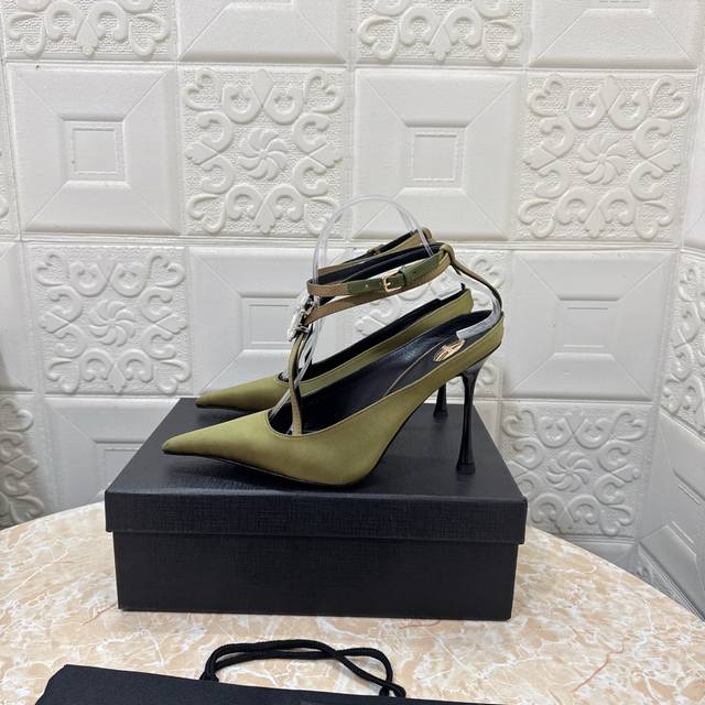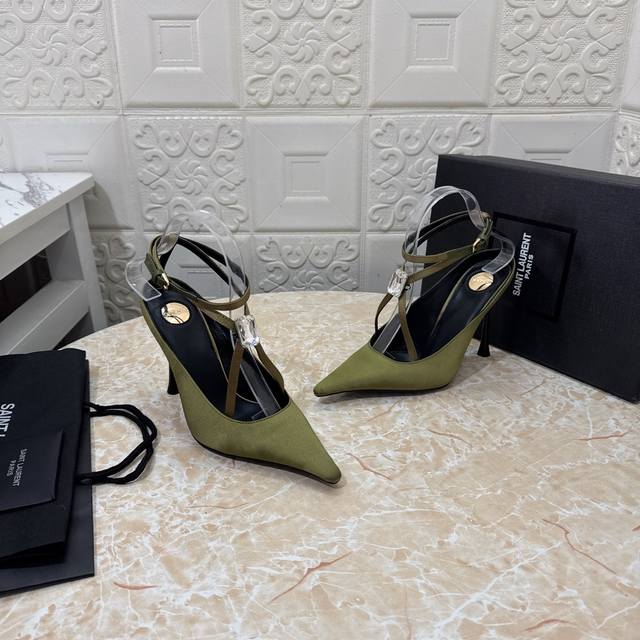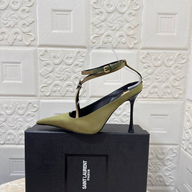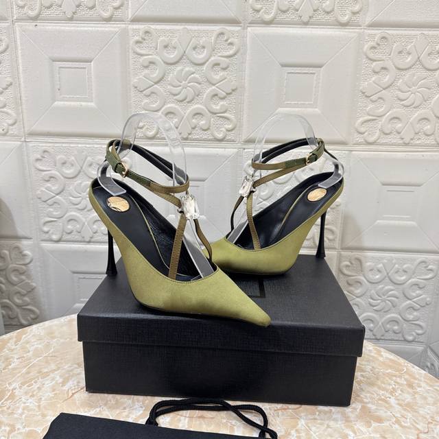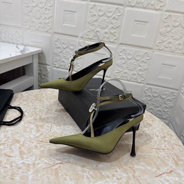 / YSL.顶级版本.高品质. 配置全套包装2025新款 官网同步 1:1开模 水钻装饰包头鞋鞋面:真丝内里:羊皮跟高: 10.5cm大底:A级原版黑色真皮大底 码