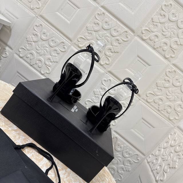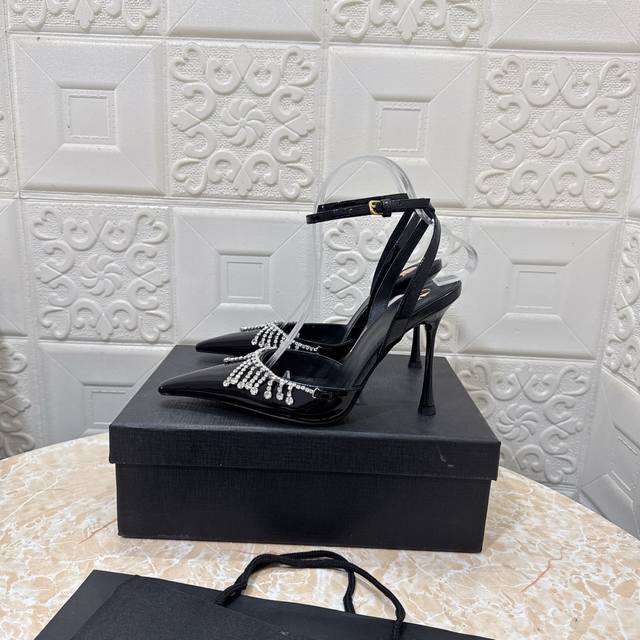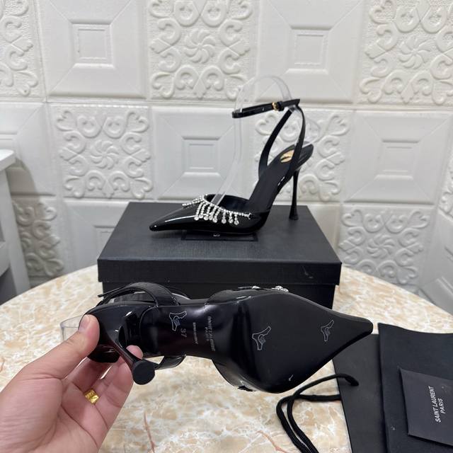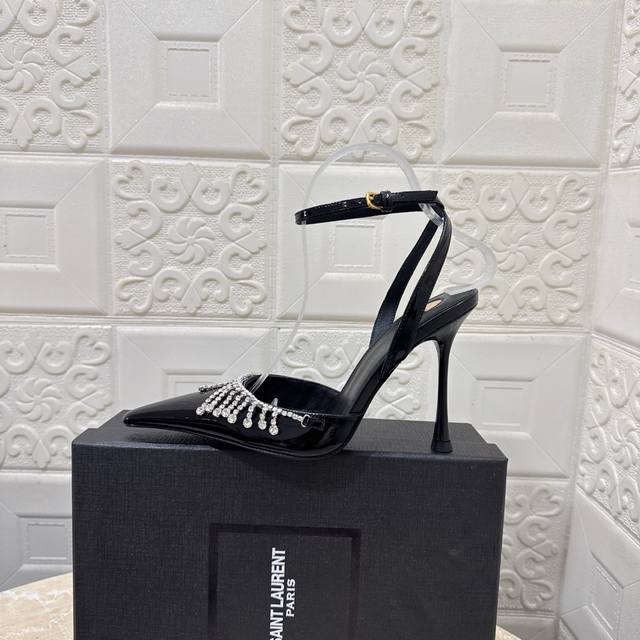 / YSL.顶级版本.高品质. 配置全套包装2025新款 水钻装饰包头鞋鞋面:漆皮内里:羊皮跟高: 10.5cm大底:A级原版黑色真皮大底 码数:SIZE.34–4