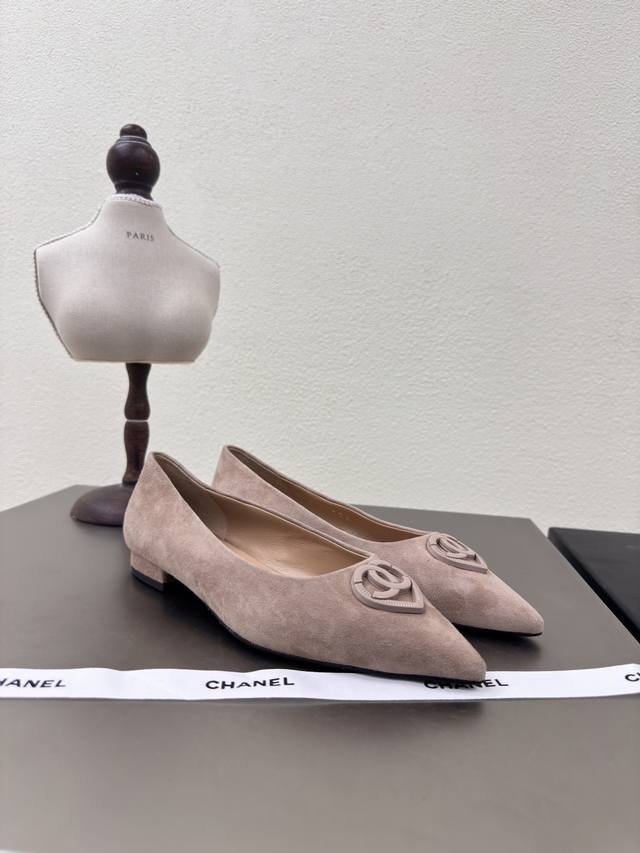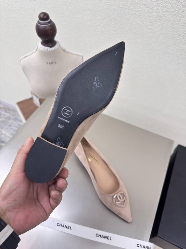 杏色 羊反绒皮 手工拖鞋