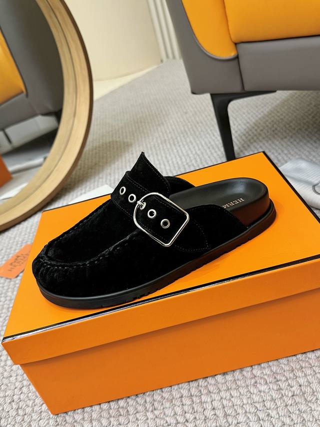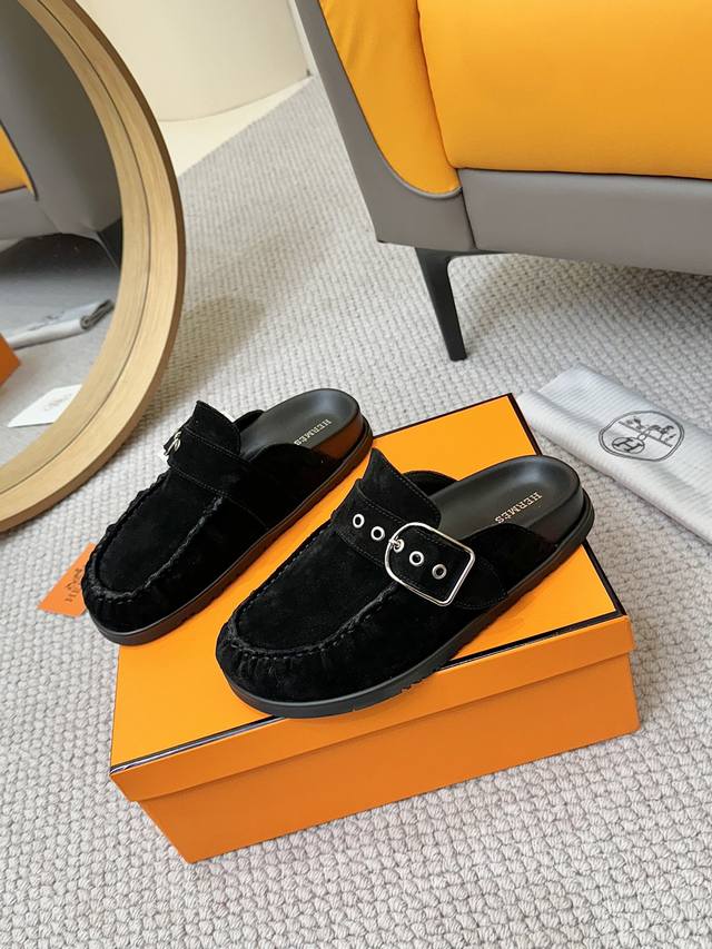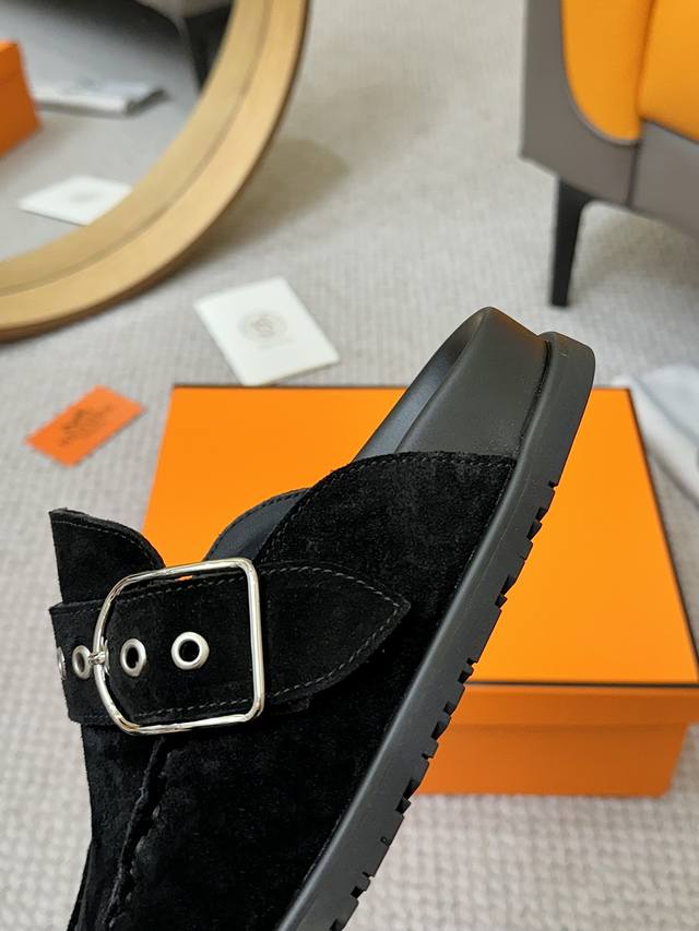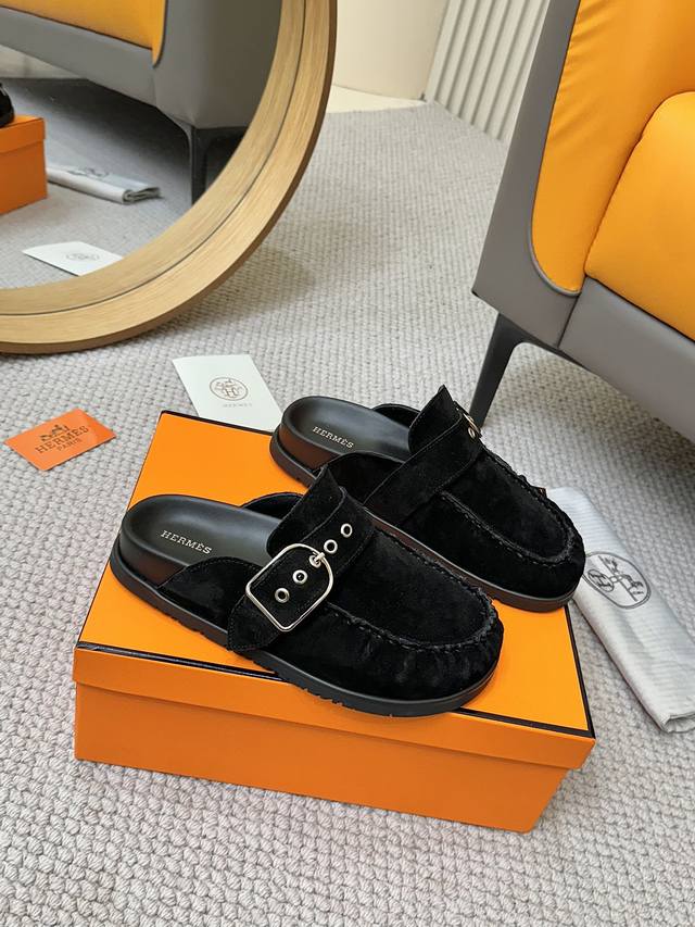 2025H家呆萌穆勒半拖勃肯鞋情侣款!夏天真的太需要百搭爱马仕拖鞋了 怎么搭配都好看,随意且高级的感觉 舒适度也很棒,搭配各种彩色袜子,潮爆了 进口高丝光面料 羊皮内里 防滑耐磨大底 Size:女装35-40 女装41码定做。男装:40-45