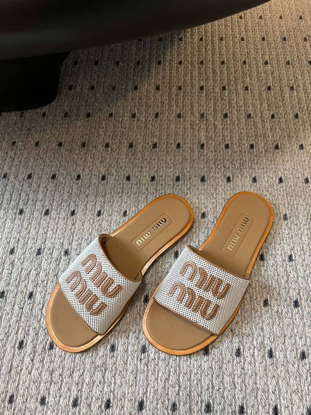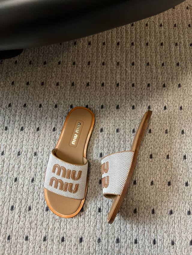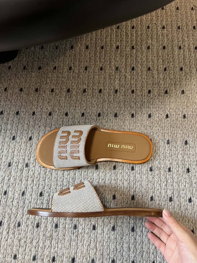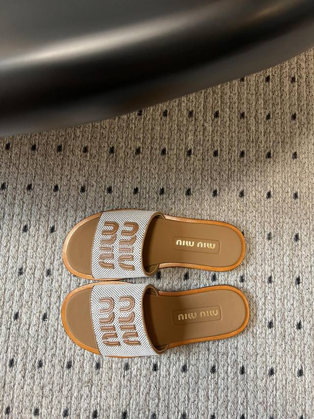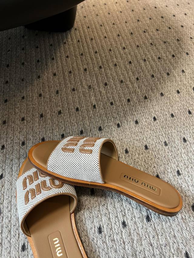 批350 独家上新Miu Miu 25Ss平底编织字母平底拖 妥妥的度假风来袭 Zp开发 原版拆卸 对版缪缪字母秒杀市面版本 Miu真的太少女啦!超级软糯 喜欢