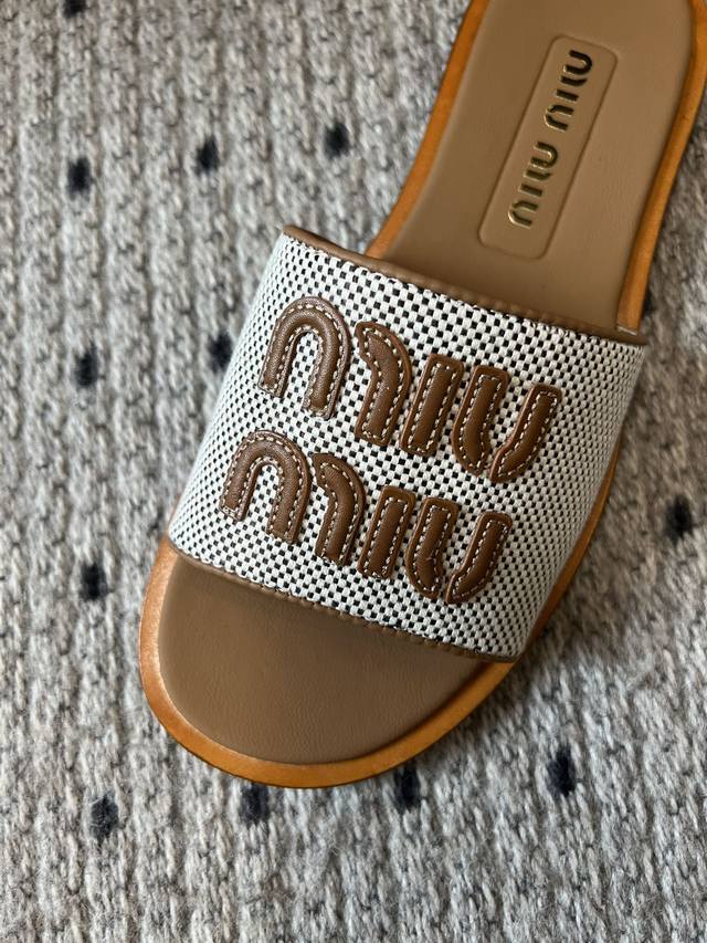 / 批350 独家上新Miu Miu 25Ss平底编织字母平底拖 妥妥的度假风来袭 Zp开发 原版拆卸 对版缪缪字母秒杀市面版本 Miu真的太少女啦!超级软糯 喜欢