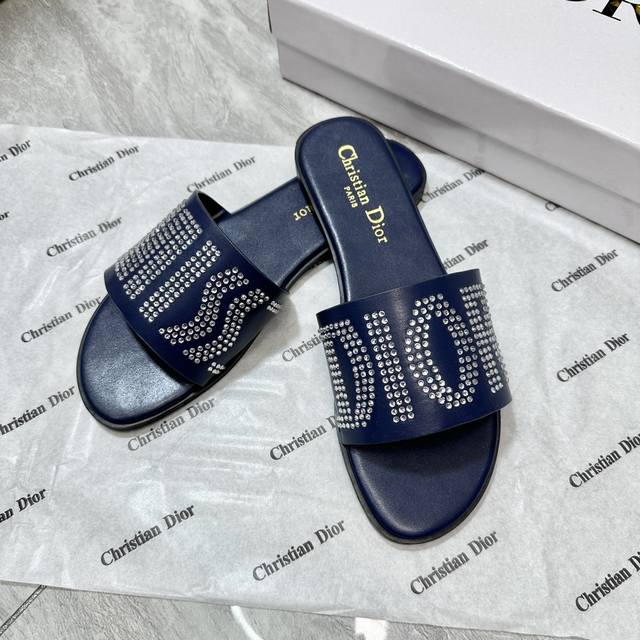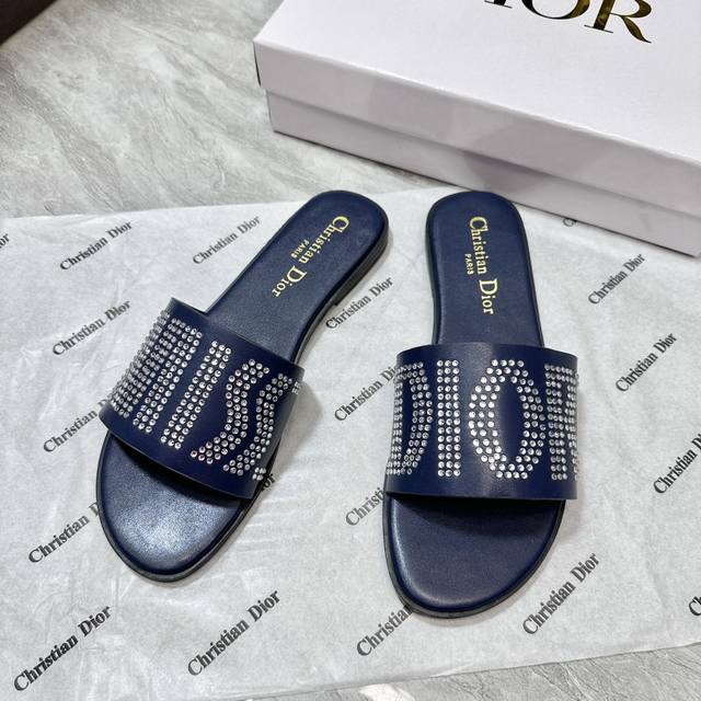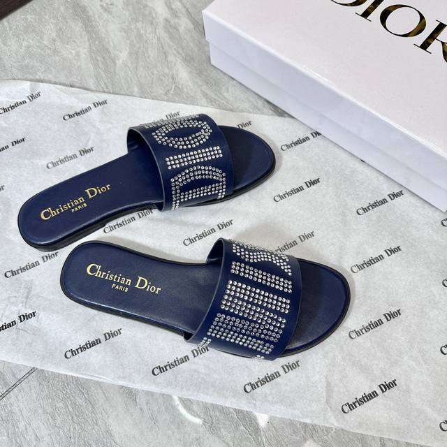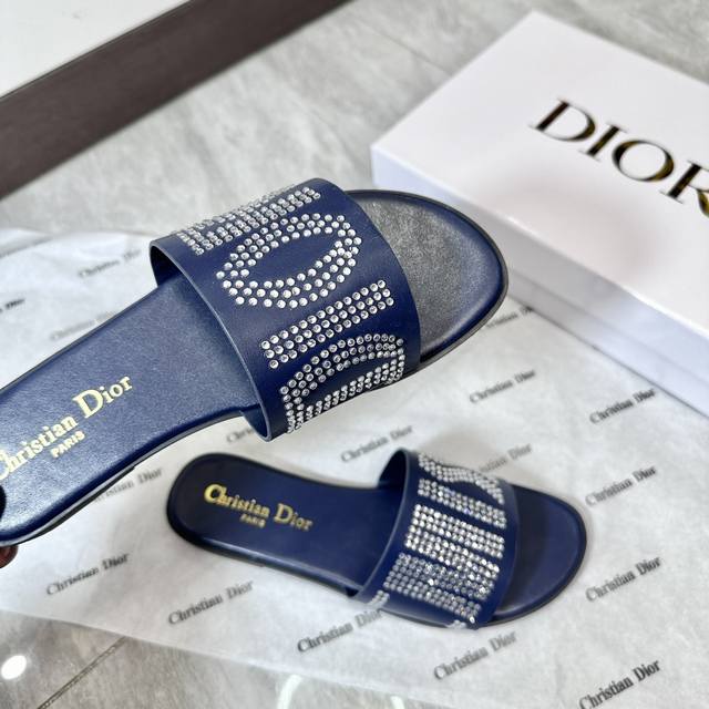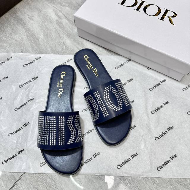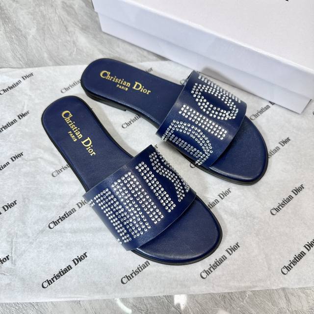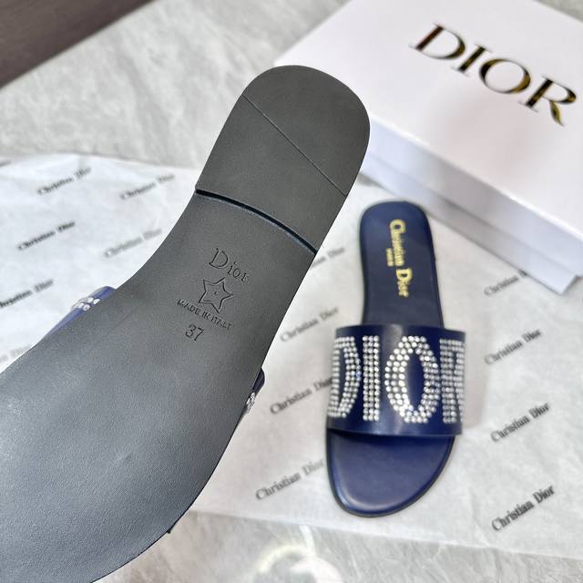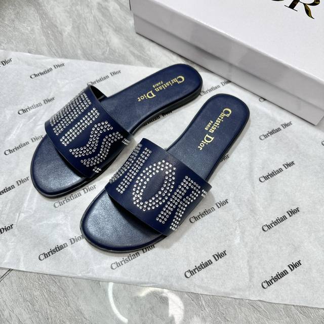 dior 迪奥春夏新款 水钻平底拖鞋 一字拖 凉拖