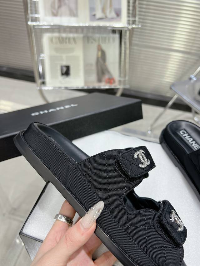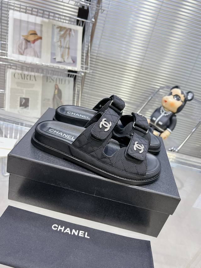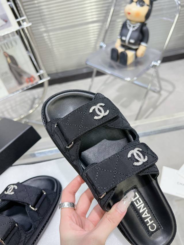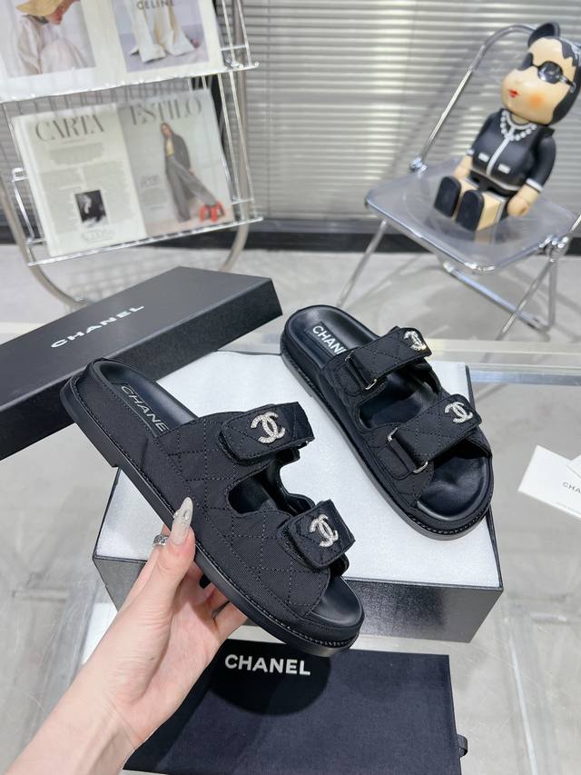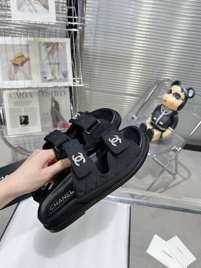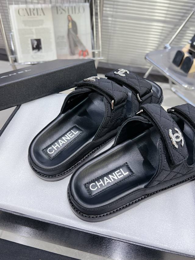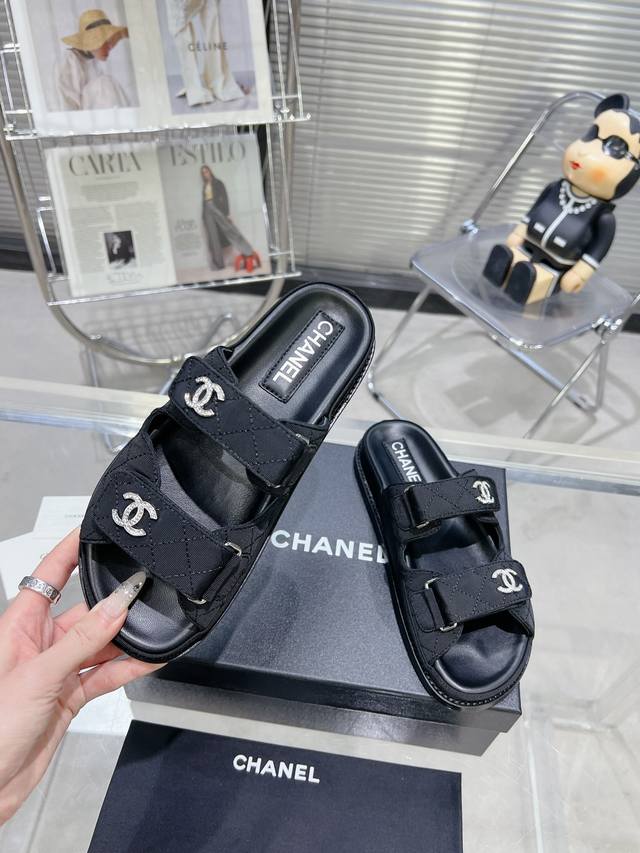 chanel 香奈儿春夏新款 菱格魔术贴半拖 沙滩拖鞋 厚底凉鞋