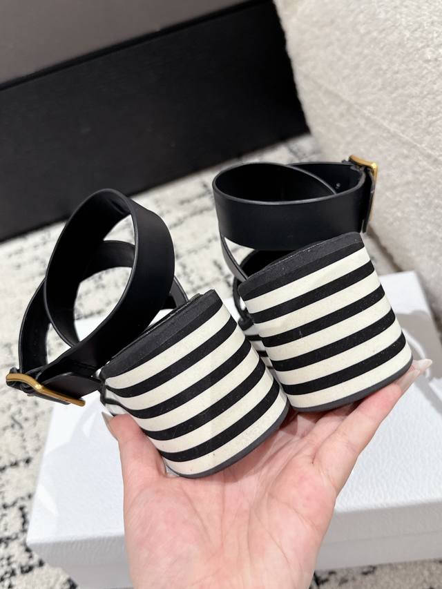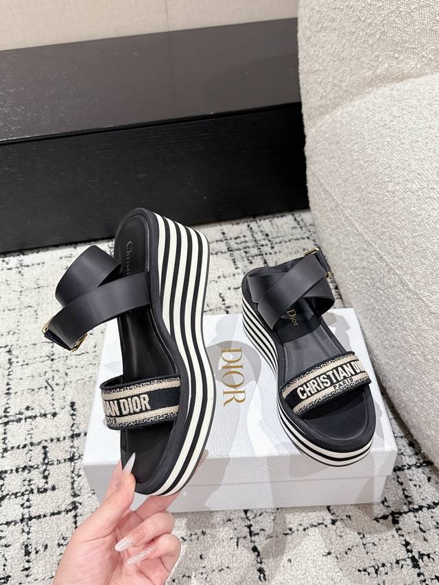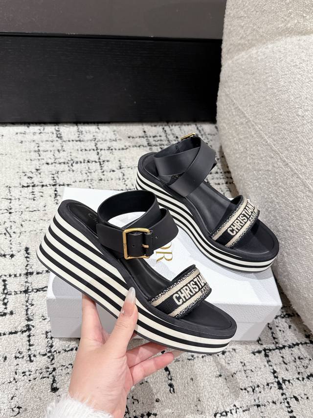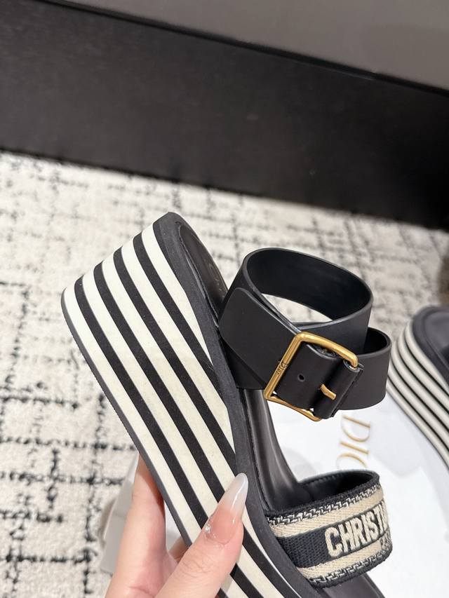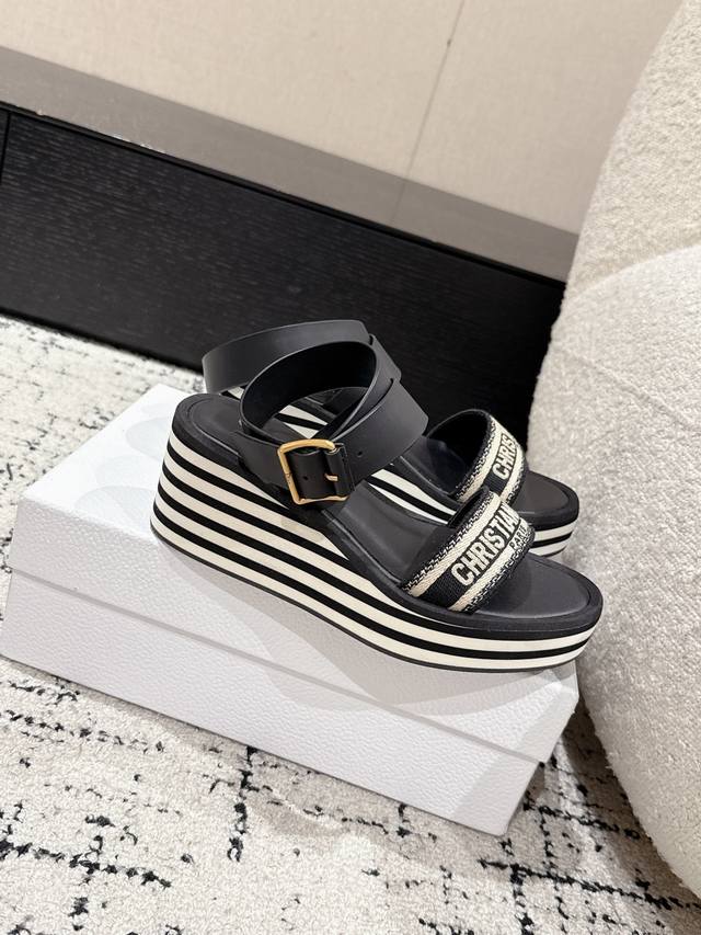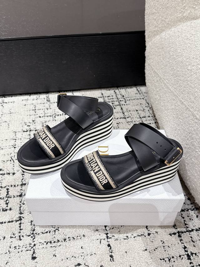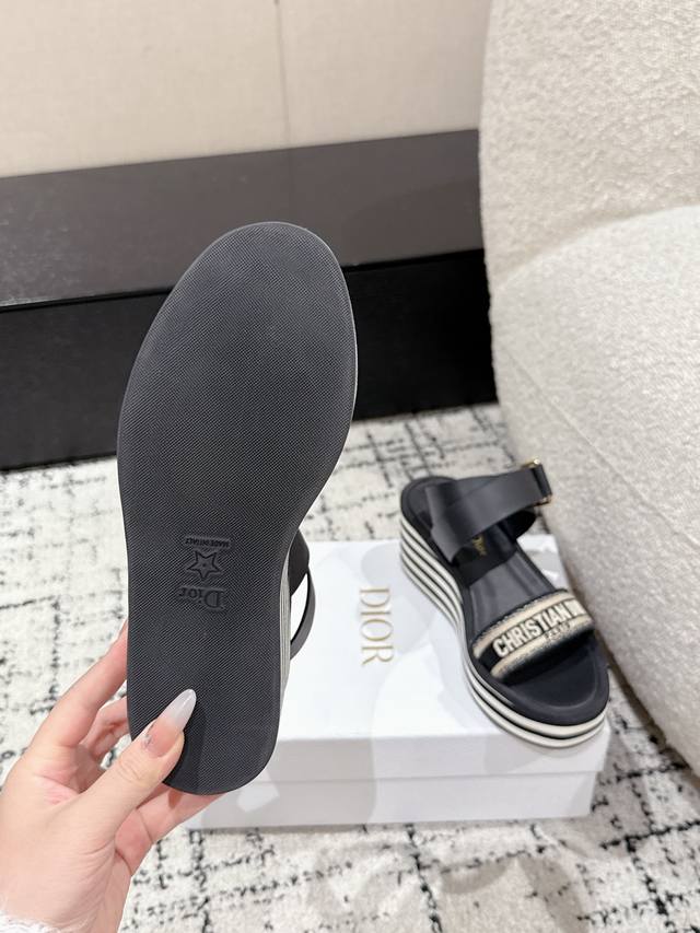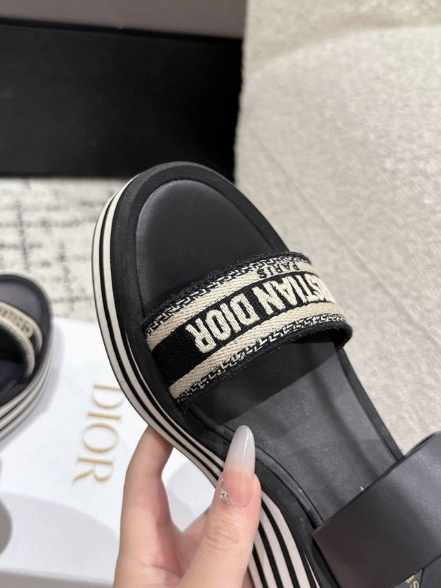 dior迪奥 25/ Dway 织物 刺绣徽标露趾 7Cm 厚底 一字带 凉鞋
