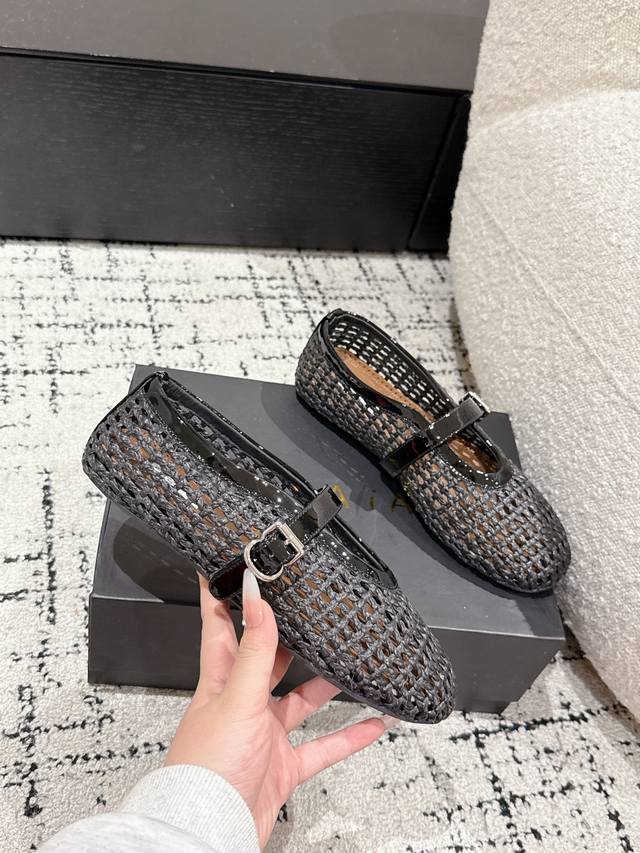 alaia 阿莱亚 25/ 春夏 最新 复古草编 芭蕾舞鞋