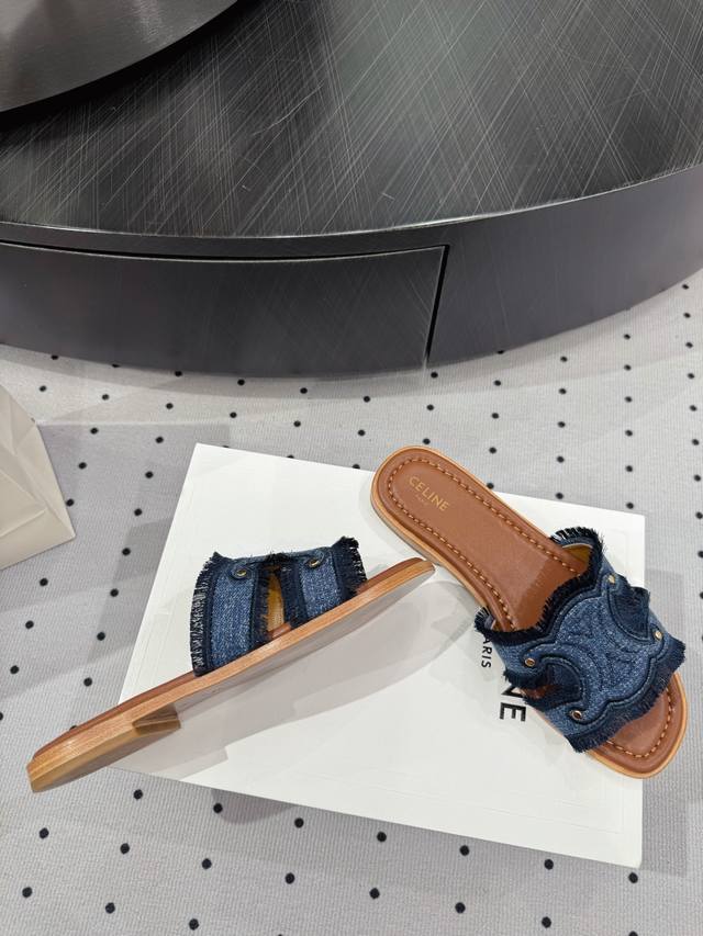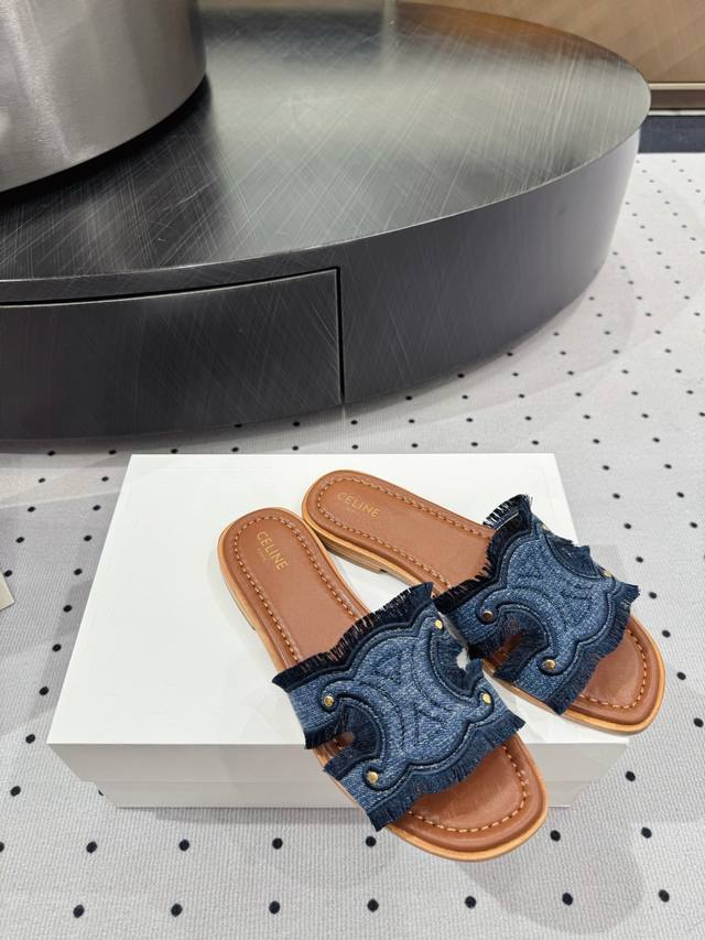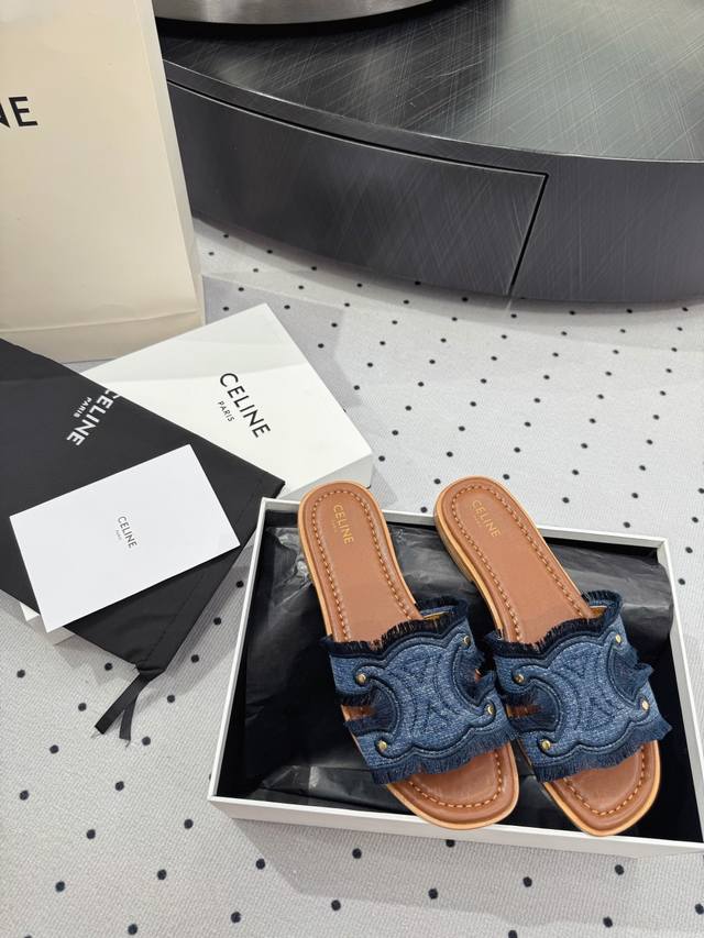 / 全新爆款上新 面料 牛仔布 内里 羊皮 鞋底 牛皮底 优雅风格 创造不一样的感觉 跟高 1 Cm 专柜包装 简约气质款式! Show Bdetails Size