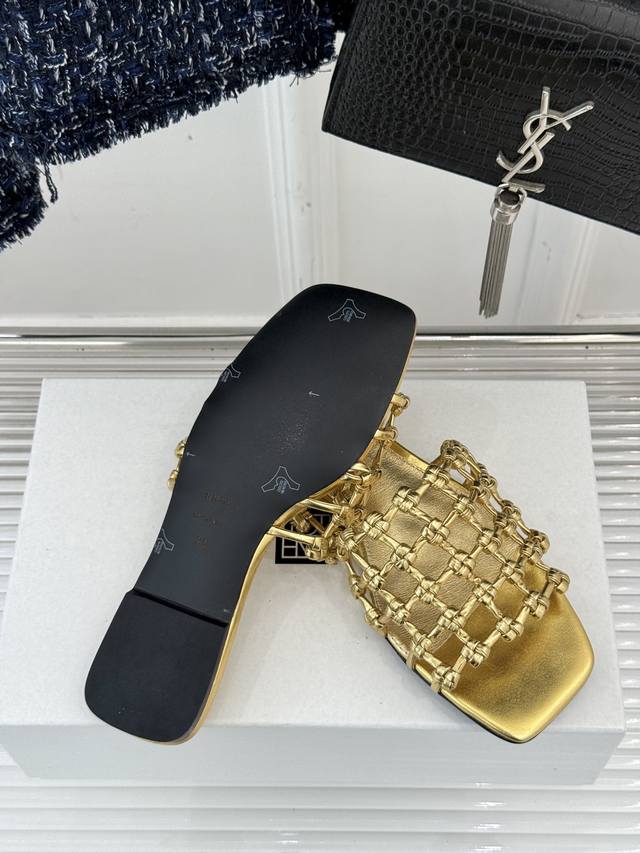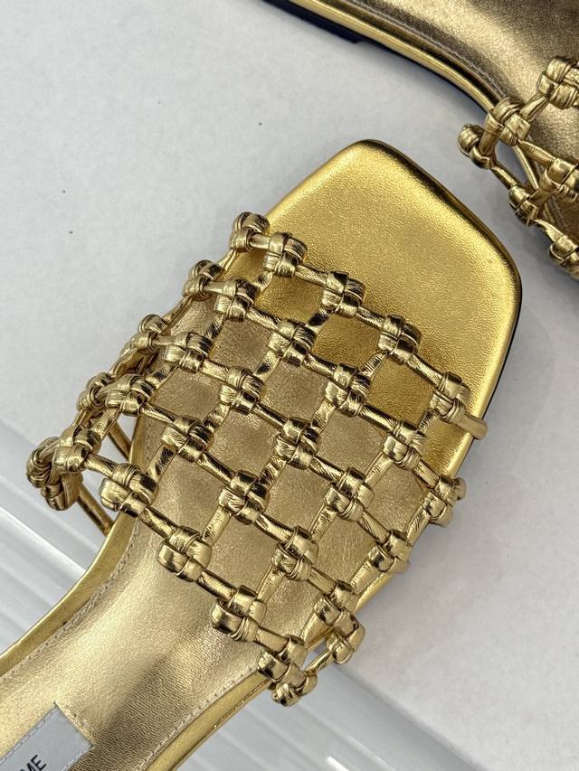 方头编织平底高跟拖鞋