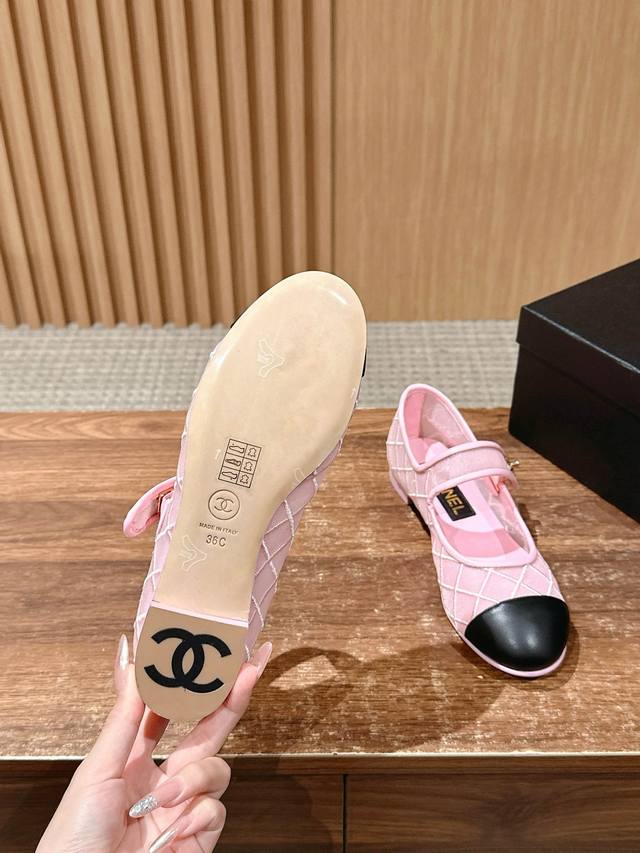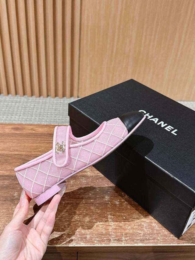 香奈儿书包扣网纱玛丽珍 春夏新款网感玛丽珍鞋 平底网纱菱格单鞋 超级公主的一双小鞋子 这次材质是纱质的 视觉轻盈不闷脚 菱格搭配又增加了一些少女洛丽塔的感觉