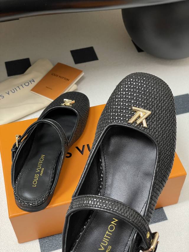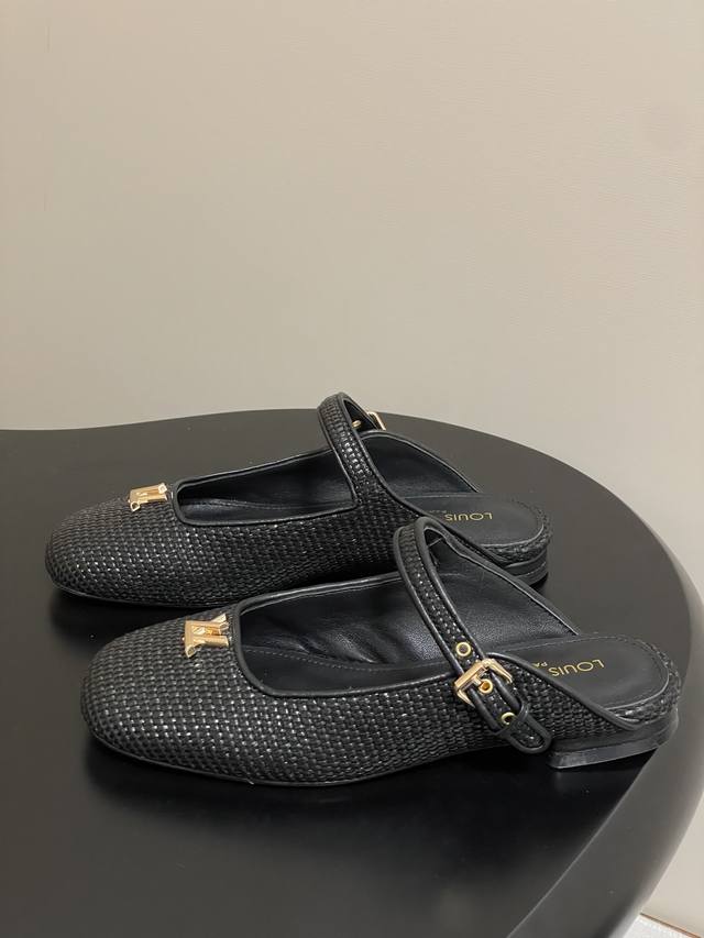 25Ss夏季新款 Louis Vuitton 路易威登 Lv 拉菲草编织包头穆勒鞋平底玛丽珍半拖鞋