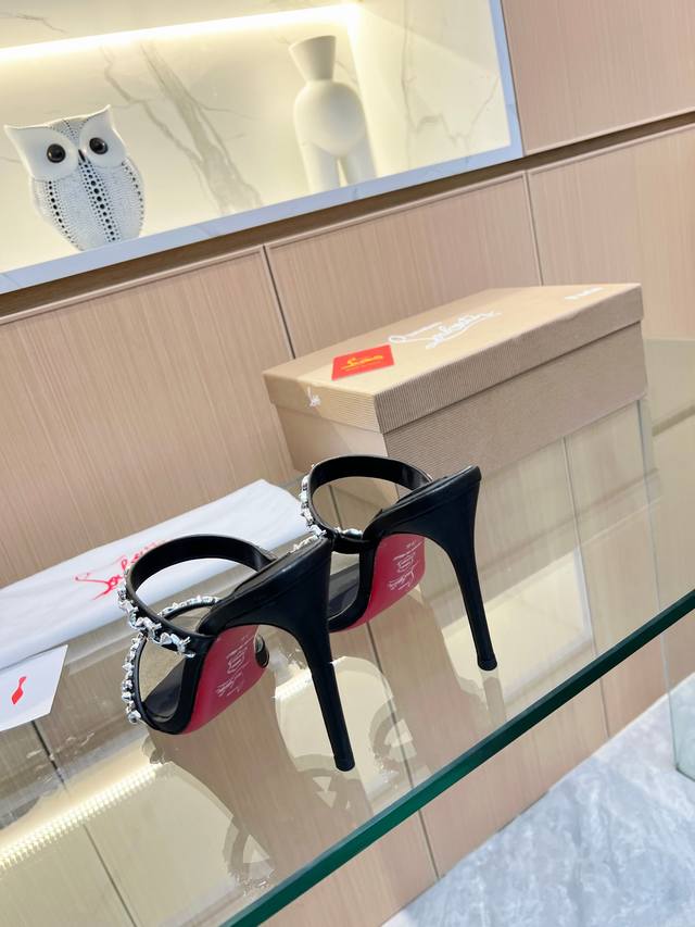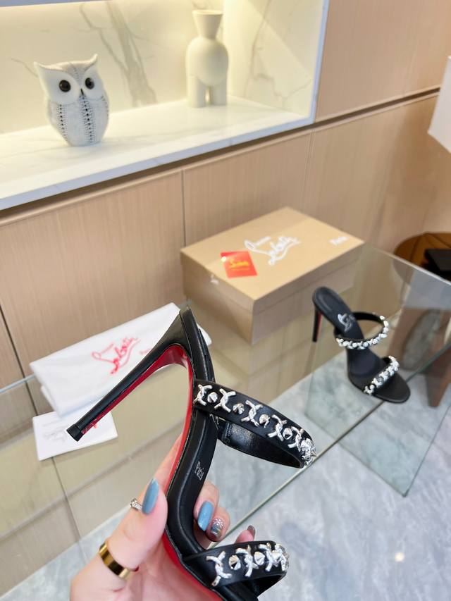 Christianlouboutin 路铂廷 Cl红底鞋Just Queen春季女士水晶高跟凉鞋,鞋面油边定制五金设计精致优雅,窄长的鞋跟为足部提供舒适承托,两条钻带优雅地围绕足部,并镶嵌珠宝般的定制水晶,全部手工一个个嵌入 原版一致非常牢固 上脚轻盈灵动,整个鞋子前卫出众,闪烁夺目