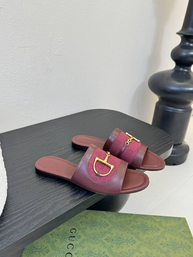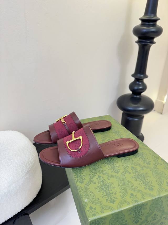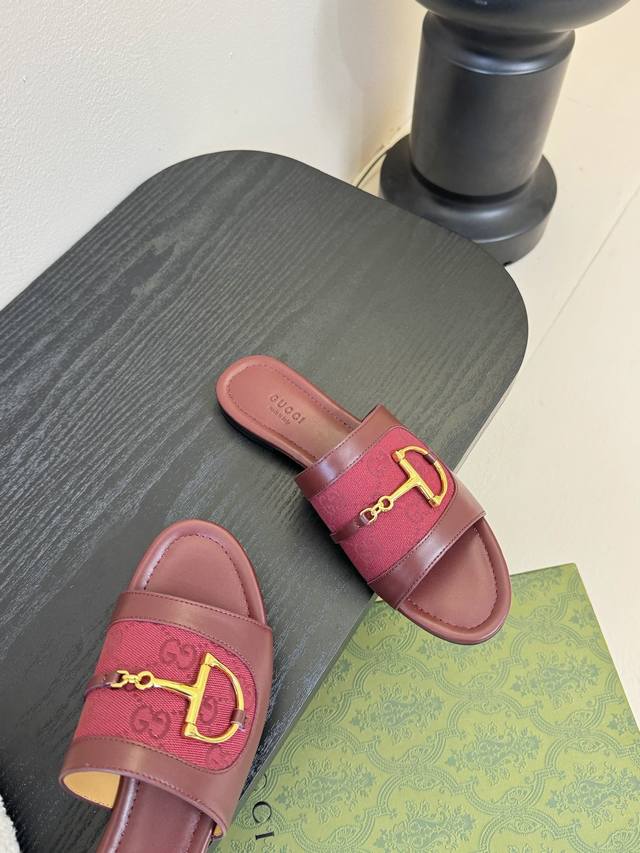 Gucci 古驰经典老花马衔扣拖鞋 夏天最值得入手的单品 自带高级气场的凉鞋 搭配裙装裤装率性洒脱 日常度假都是必不可少! 鞋面采用原版定制材质 内里垫脚进口小
