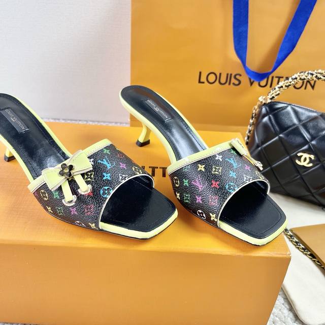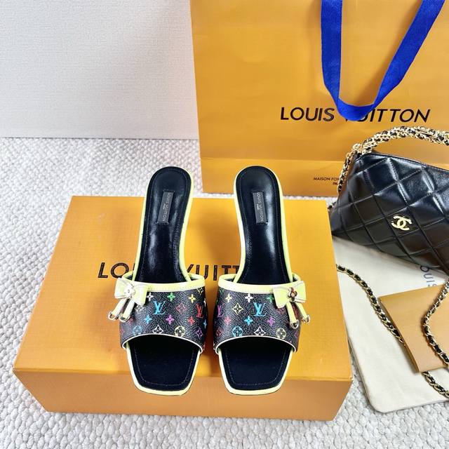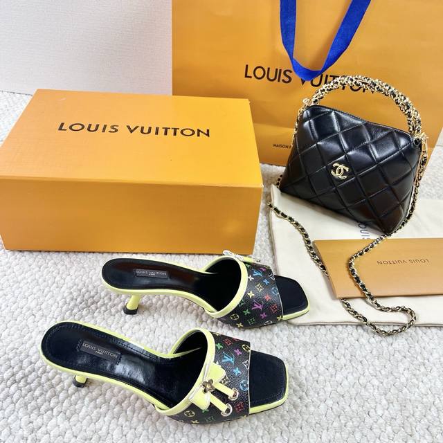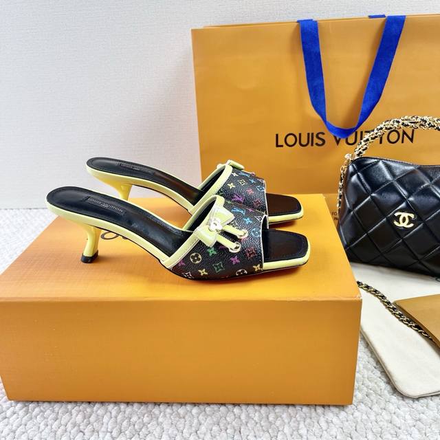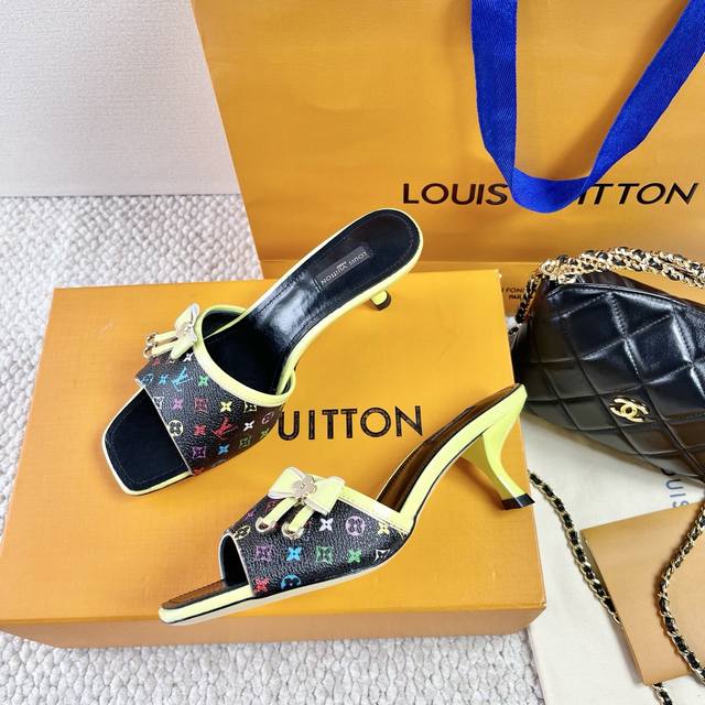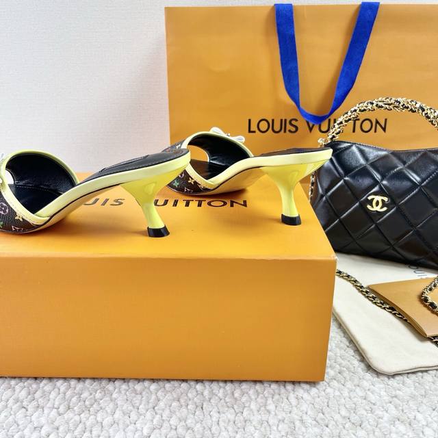 L驴牌 中古风蝴蝶结小猫跟凉拖鞋 鞋面:老花革 垫脚:羊皮 真皮大底 跟高:6Cm 码数:35-39 40 41 42定做不退不换
