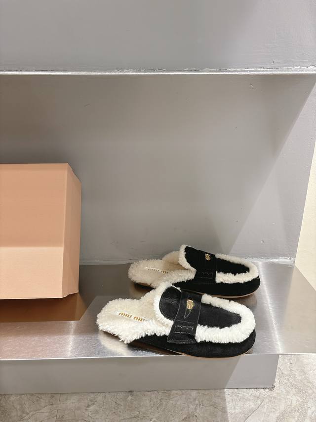 Miumiu 缪缪 Ss秋冬,金币款懒人拖鞋毛毛鞋