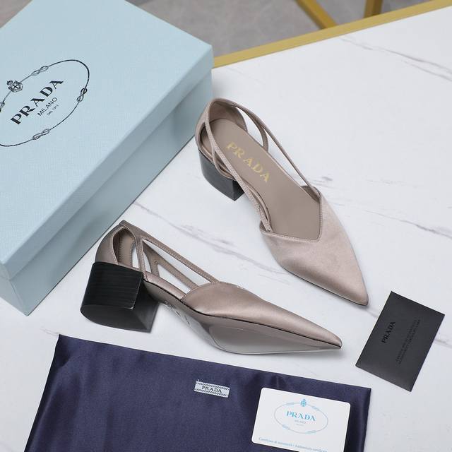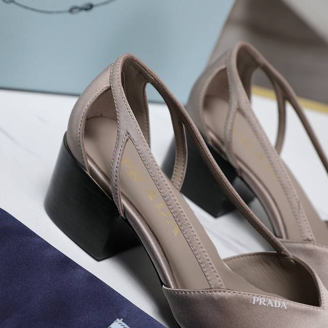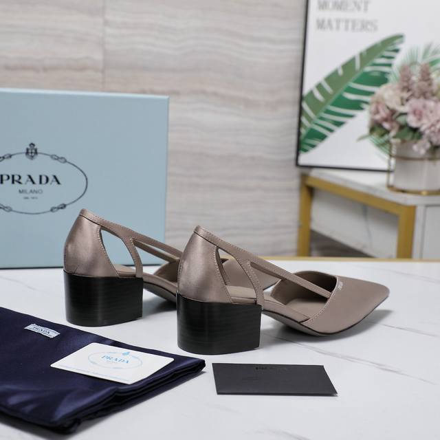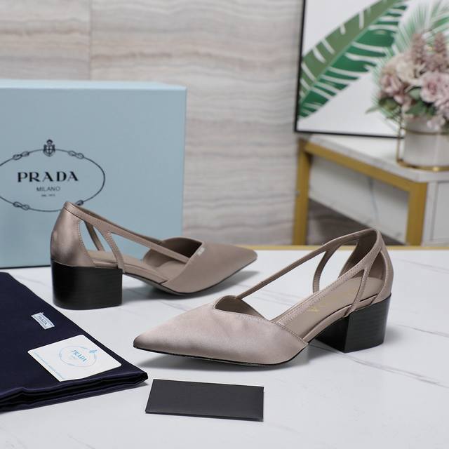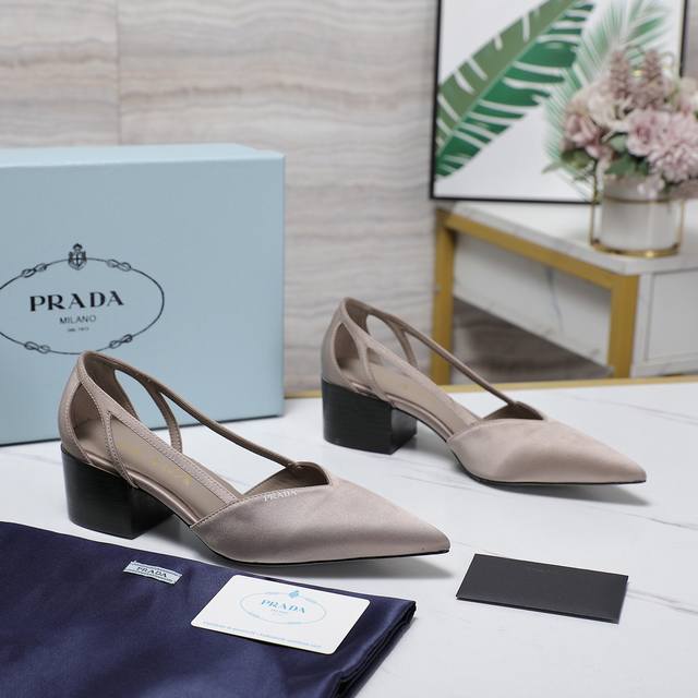 / Prada 普拉达 25 秋冬秀款女鞋 尖头粗跟蝴蝶结秀拼色专柜走秀款! 鞋面:高定真丝面料 内里:高定进口羊皮 大底:原版意大利真皮大底 跟高:5Cm 鞋码:
