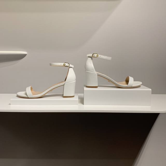 Sw Simple 5.5 Cm 新款一字带中跟粗跟时装凉鞋女夏