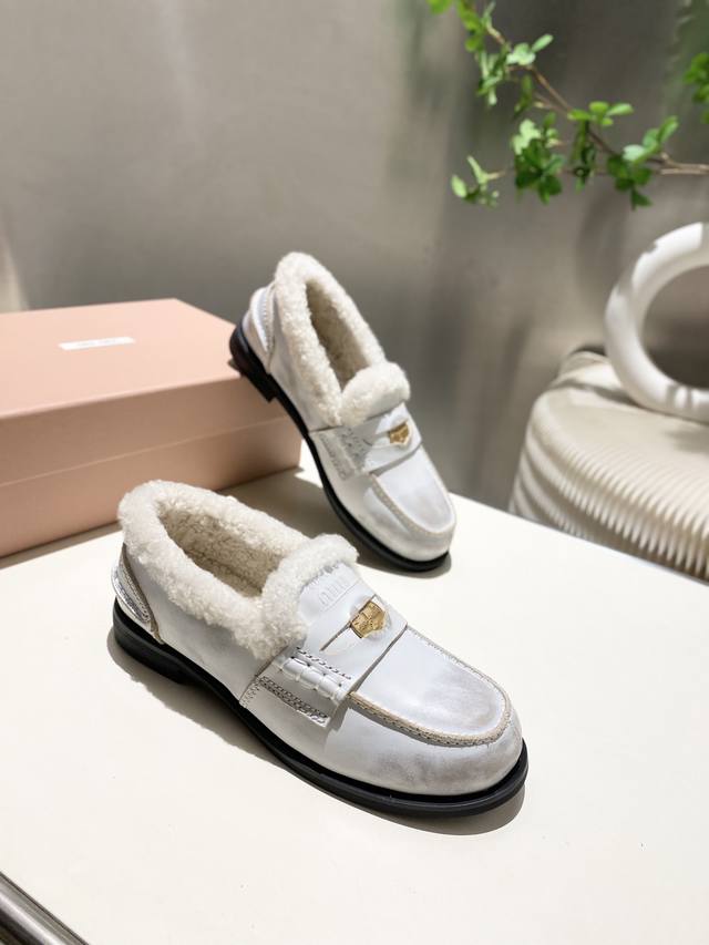 出厂价p 女装女鞋 运动原单 开边珠.擦色皮两个版本 秋冬缪家新款钱币乐福鞋!缪缪这一季这太美了吧!无敌搭配怎么穿都超级好看 钱币的设计很复古很时尚!