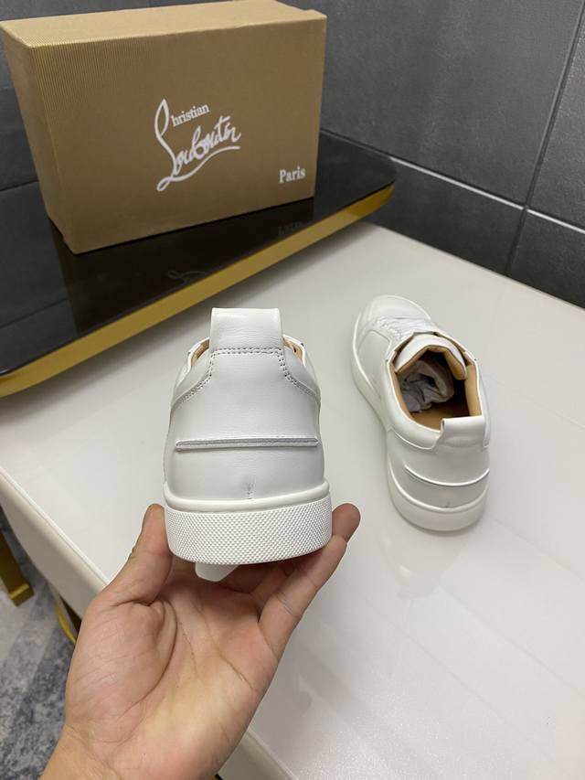 出厂价p 情侣款 。Christian Louboutin Cl红底鞋 专柜烫钻柳钉系列,情侣休闲板鞋 独家热款发布活动乳胶垫脚成品大底车线 女35-40#男3