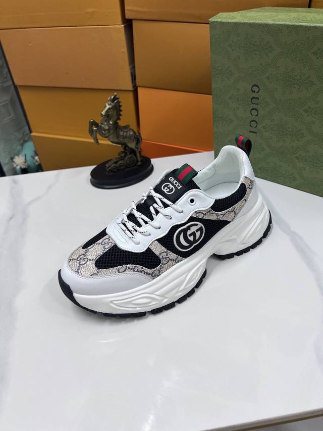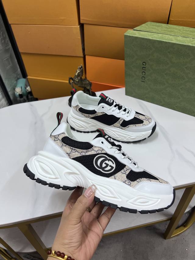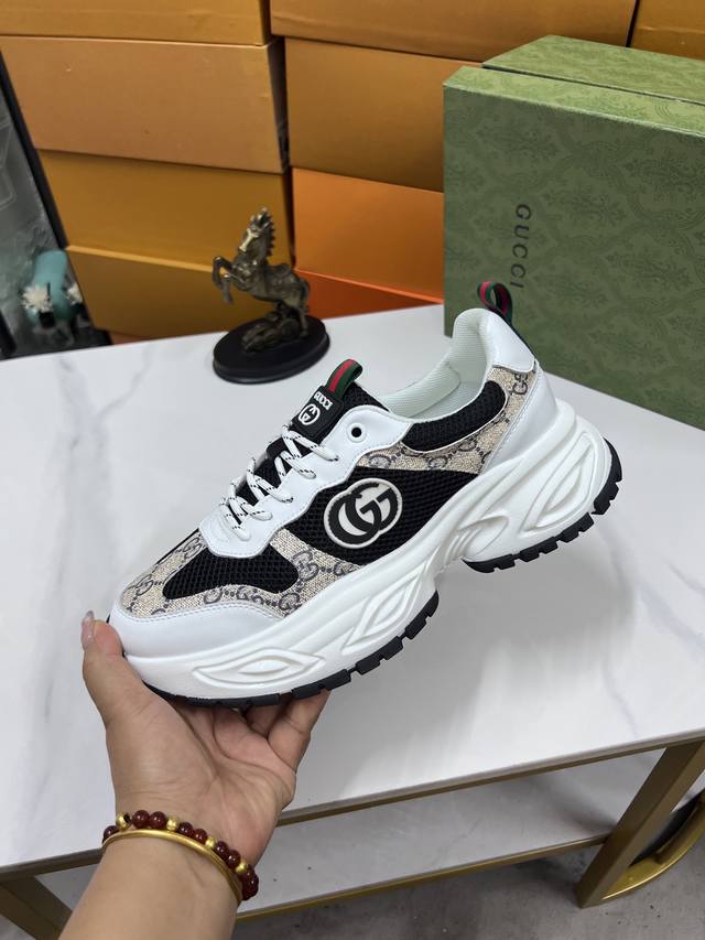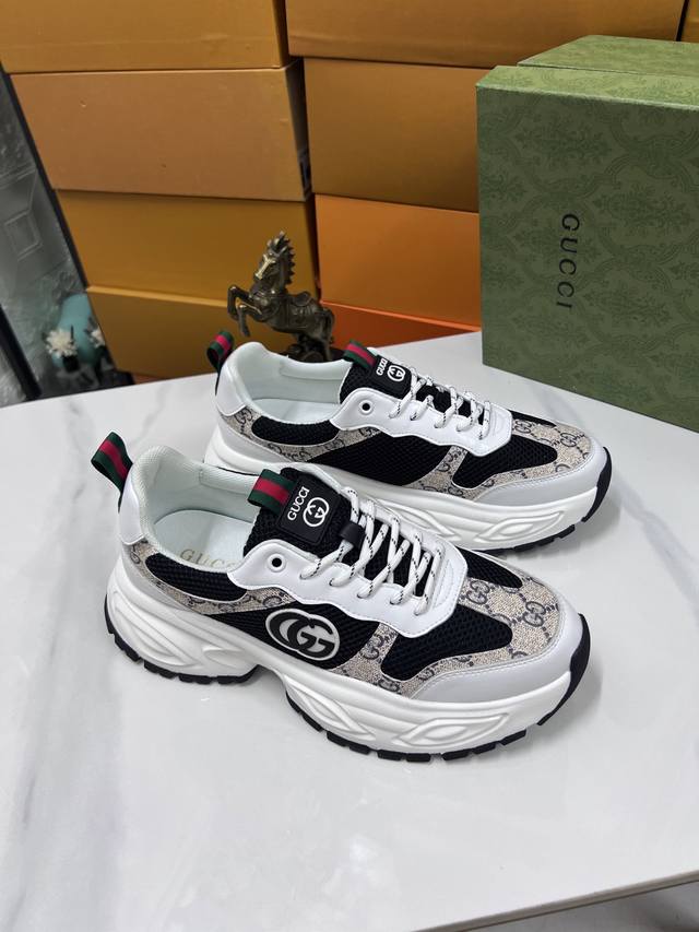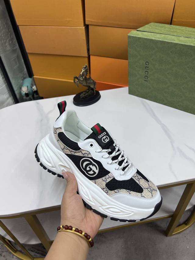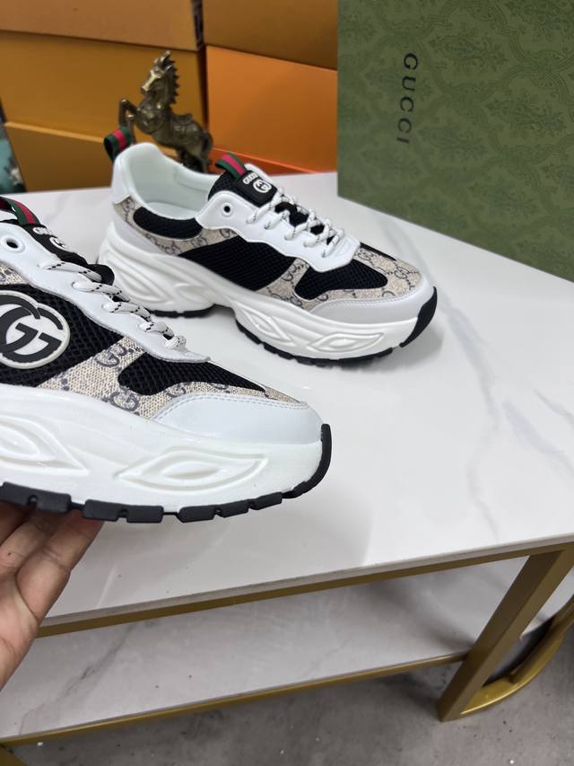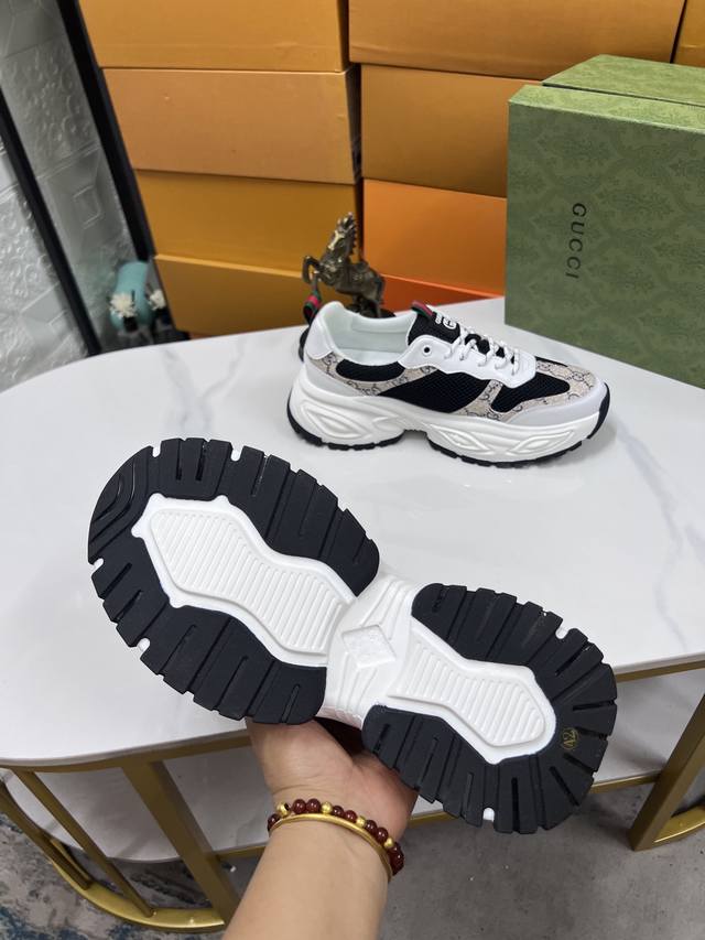 出厂价pp: 古奇 休闲板鞋 官网同步新款 进口打蜡牛皮真皮内里制作原版中底 私家定制滴胶发泡大底大底组合 38-44M