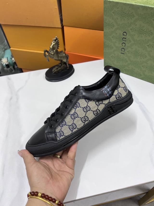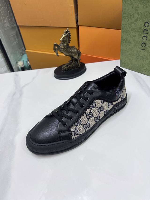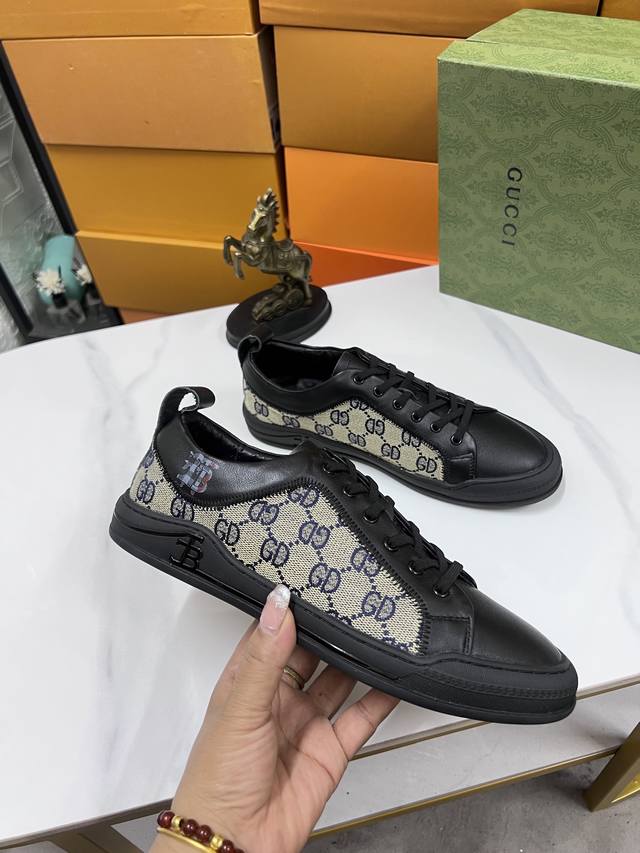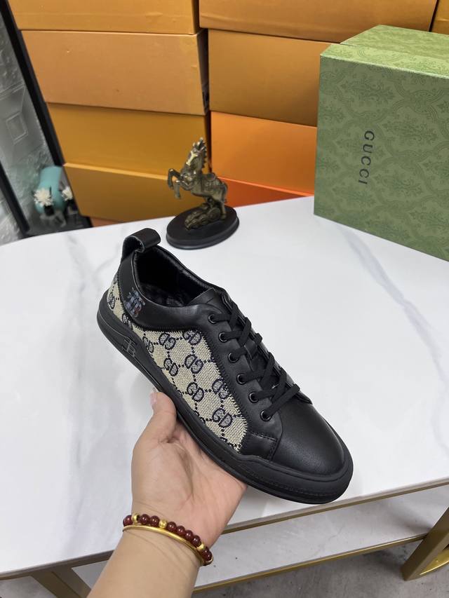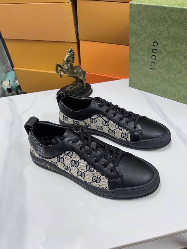 出厂价pp: 古奇 休闲板鞋 官网同步新款 进口打蜡牛皮真皮内里制作原版中底 私家定制滴胶发泡大底大底组合 38-44X