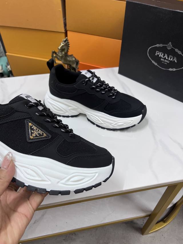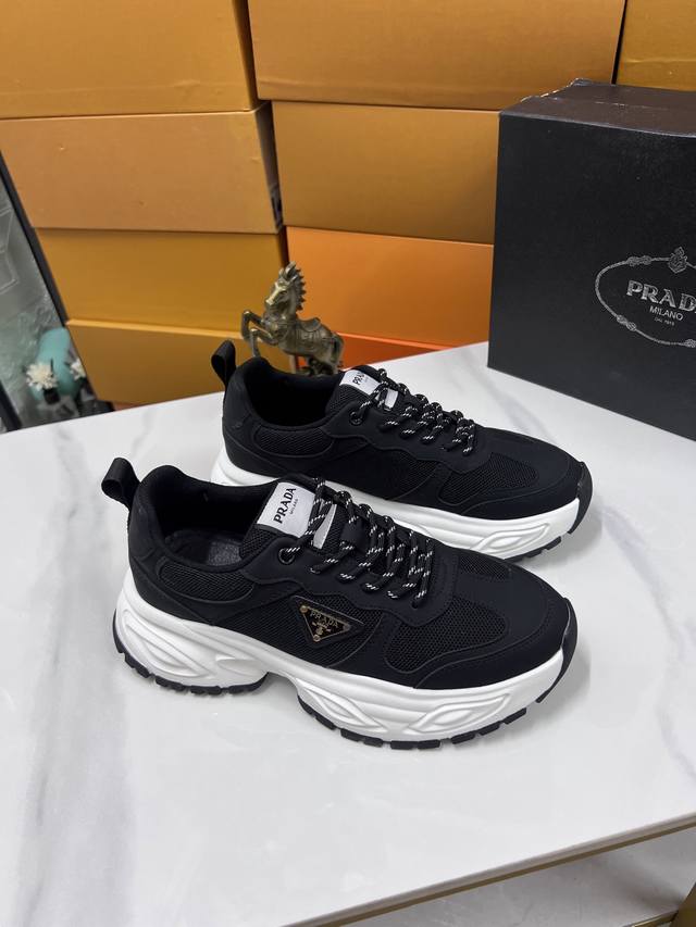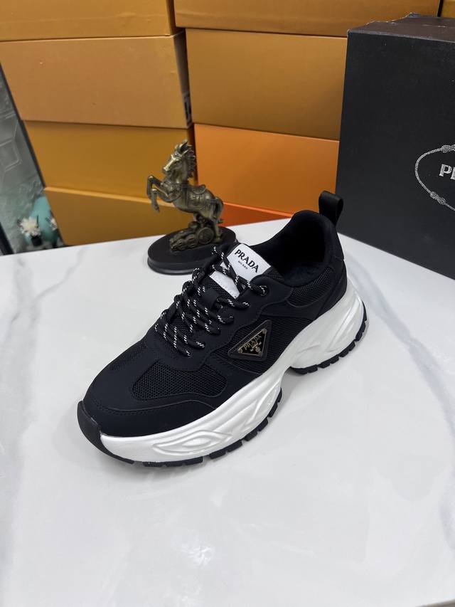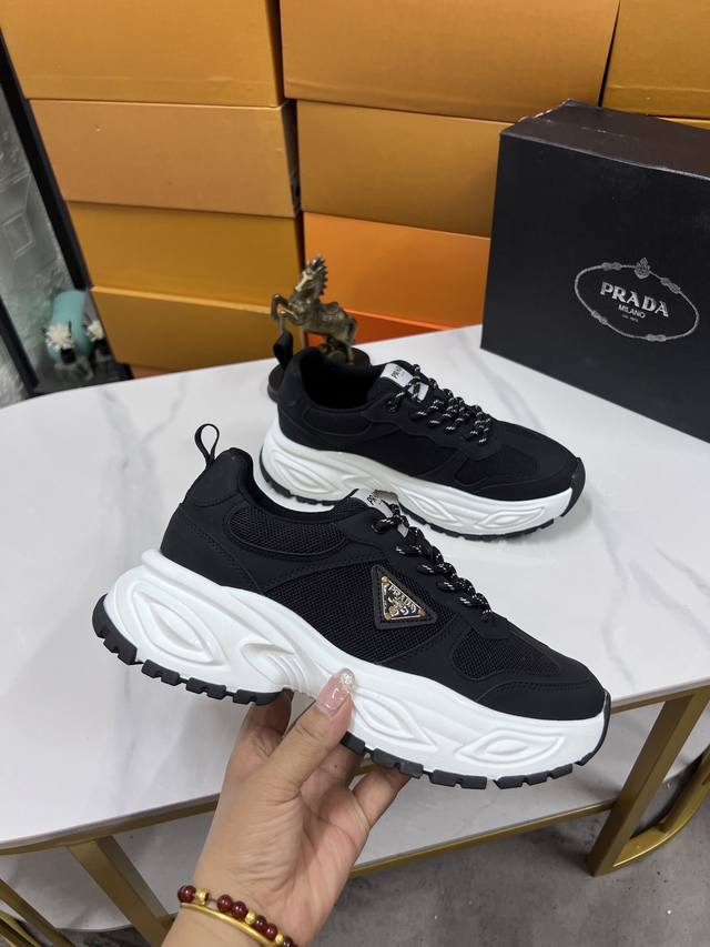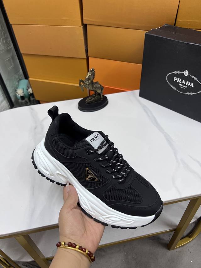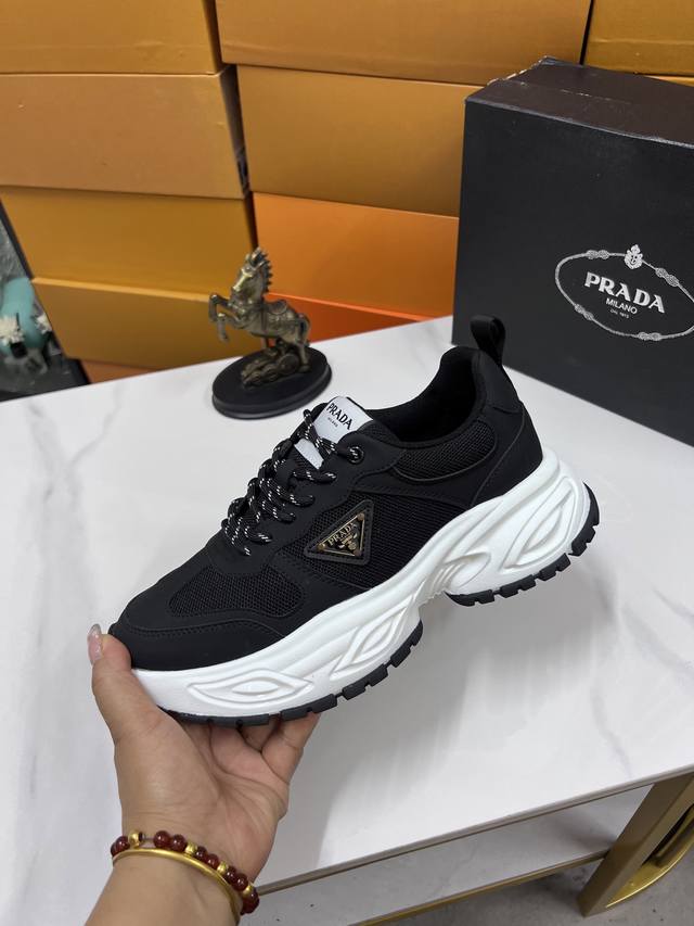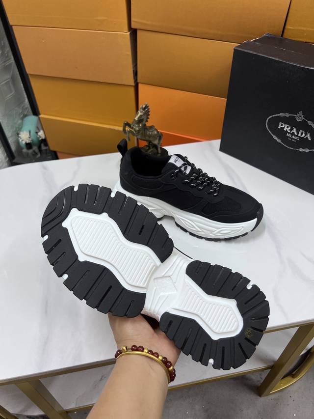 出厂价pp: 普拉达 休闲板鞋 官网同步新款 进口打蜡牛皮牛皮内里制作原版中底 私家定制滴胶发泡大底大底组合 38-44M