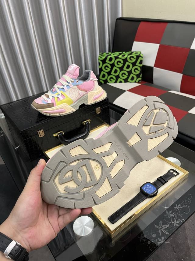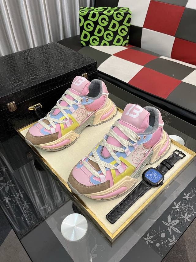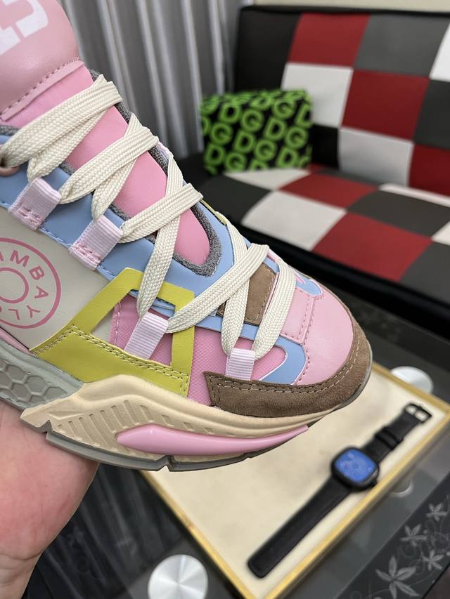/ 出厂价pp: Dg最新爆款休闲鞋,鞋舌带有品牌标志性细节,丝绸牛皮与牛反绒相结合提升格调。时尚百搭,可为各式造型增光添彩。塑造独具动感活力与摩登气息的精致设计,
