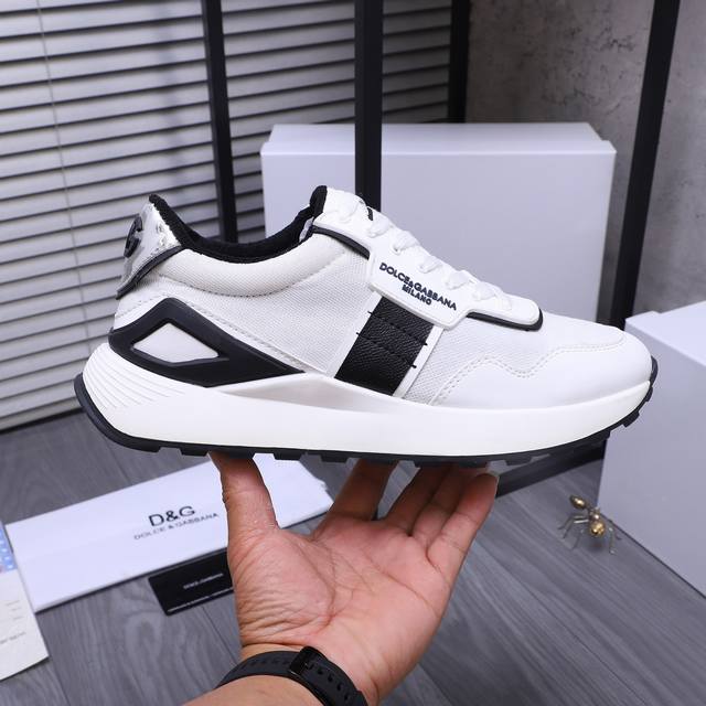 商品商标:Dg 杜嘉班纳 休闲男鞋 正码码数: 38-46 商品材料:精选牛皮拼接透气网鞋面 短绒内里 牛皮鞋垫 原版大底