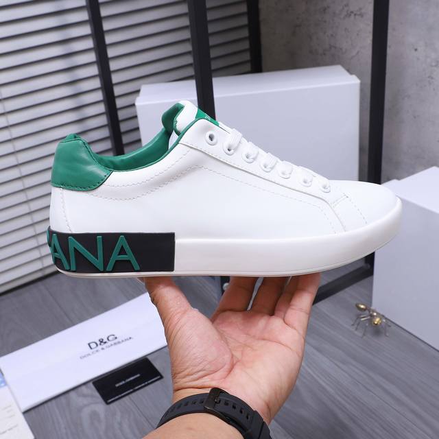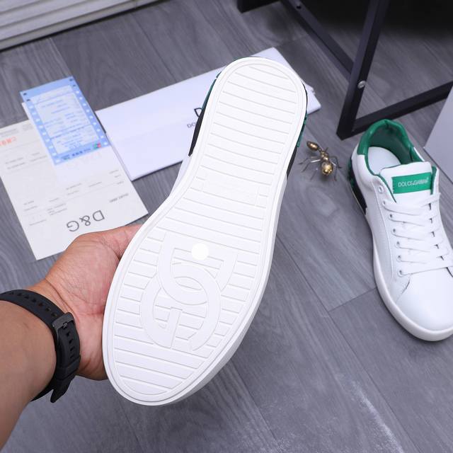商品商标:Dg 杜嘉班纳 情侣款休闲板鞋 正码码数: 35-46 商品材料:精选牛皮拼接鞋面 皮内里 牛皮鞋垫 原版大底
