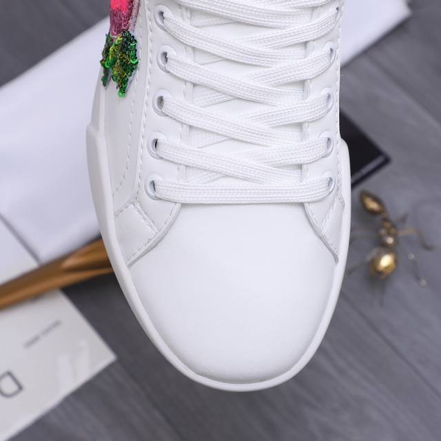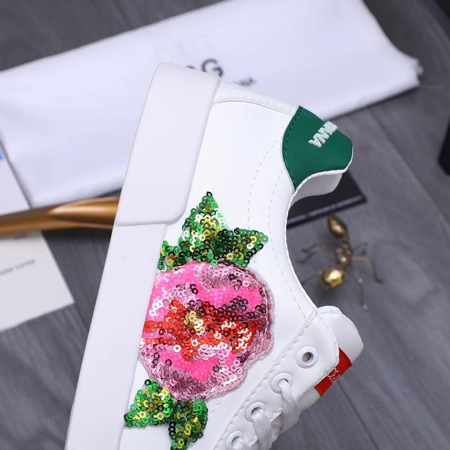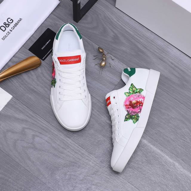 商品商标:Dg 杜嘉班纳 情侣款休闲鞋 正码码数: 35-46 商品材料:精选车缝线亮片装饰牛皮鞋面 皮内里 牛皮鞋垫 原版大底