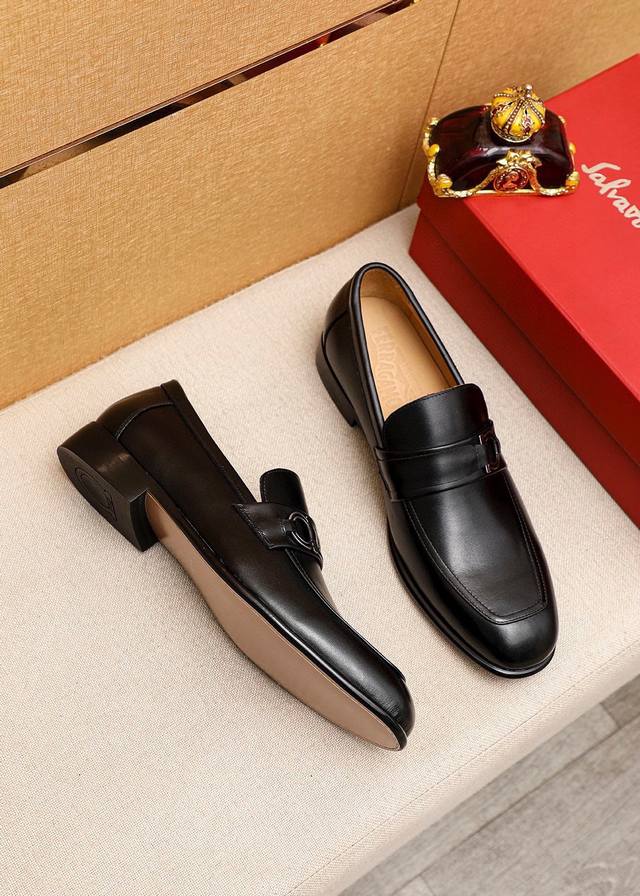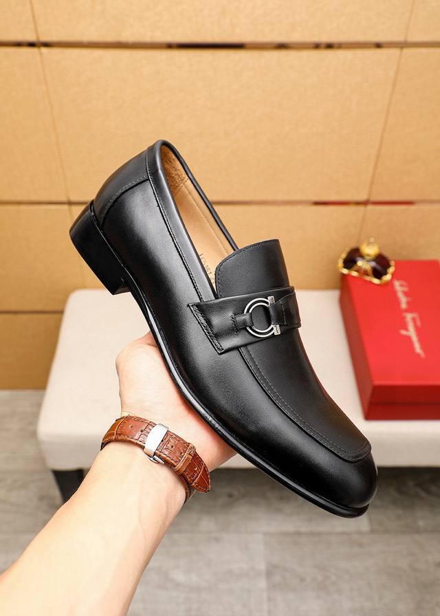 / 商品商标:Ferragamo 菲拉格慕 休闲皮鞋 正码码数: 38-44 45.46.47订制 商品材料:精选 进口头层小牛皮鞋面+奢华五金扣,进口水染牛皮内里