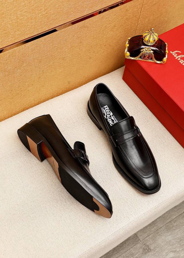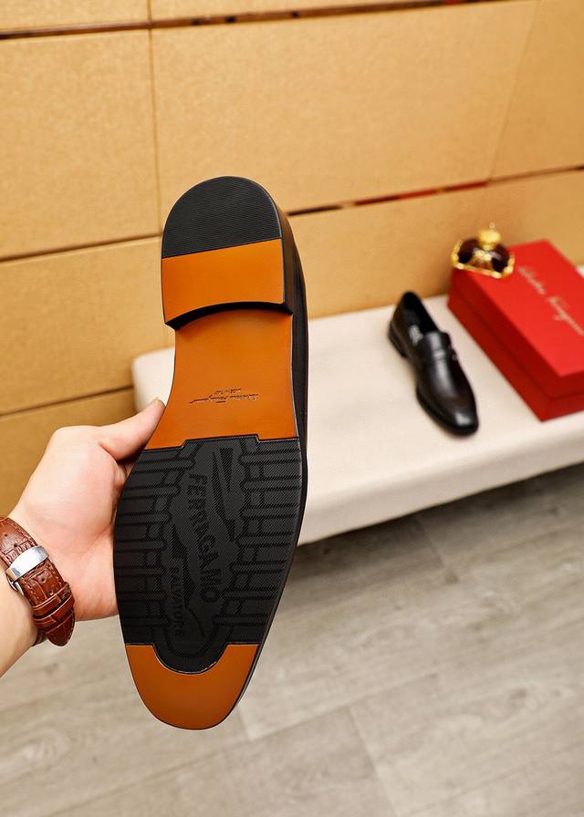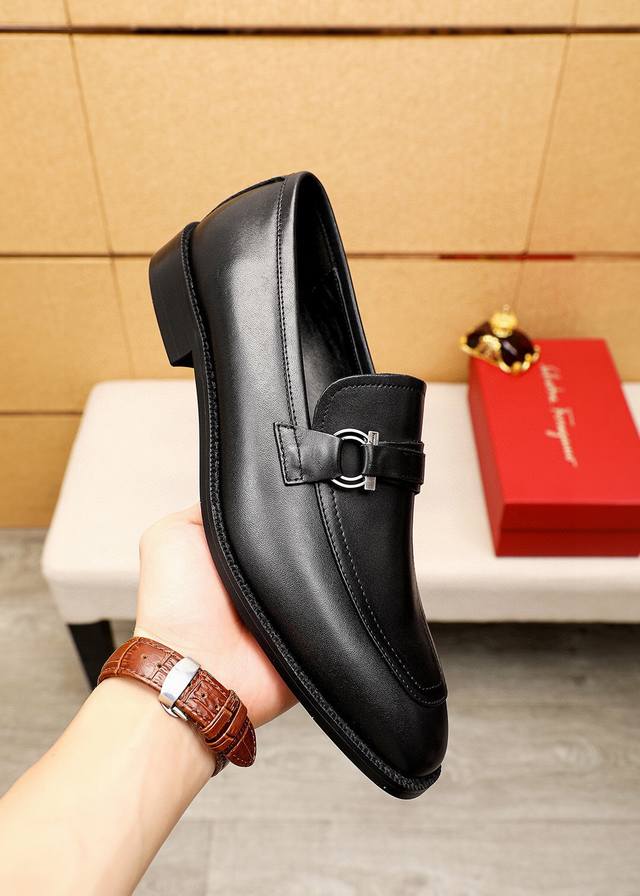 / 商品商标:Ferragamo 菲拉格慕 商务皮鞋 正码码数: 39-44 38.45.46订制 商品材料:精选 进口小牛皮鞋面+经典五金扣,进口羊皮内里。强烈立