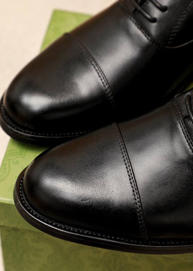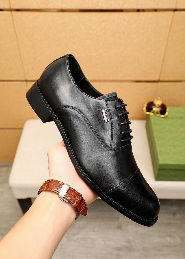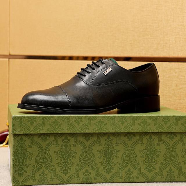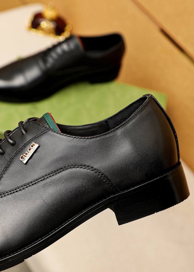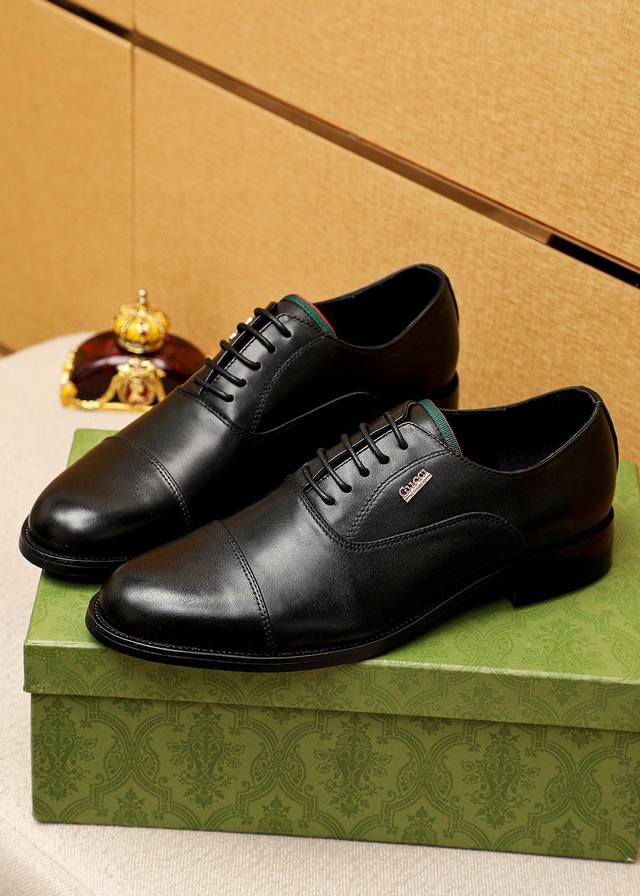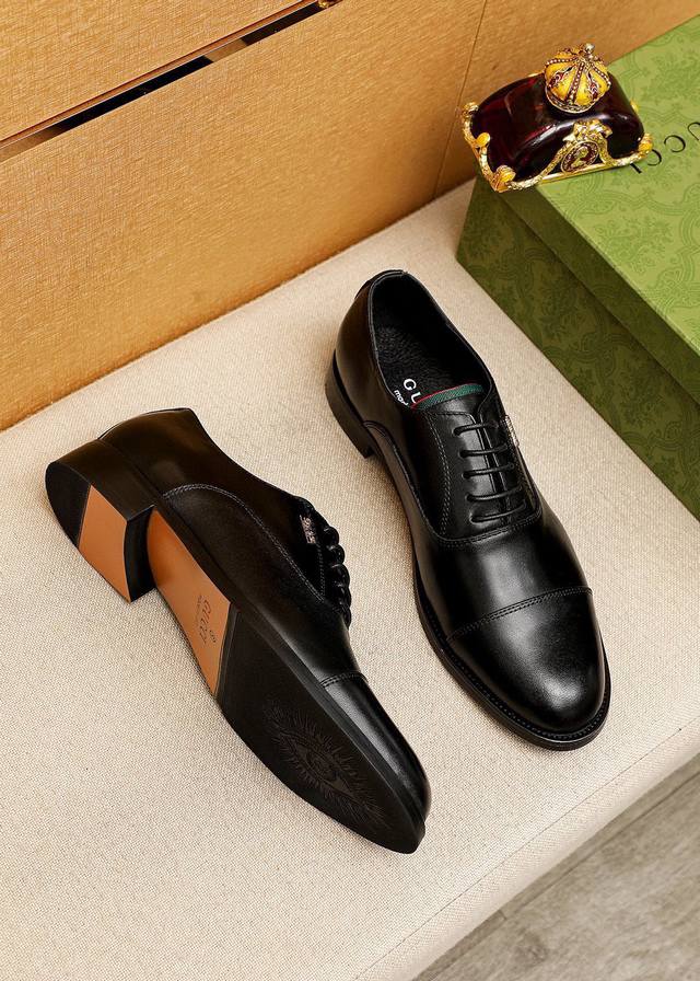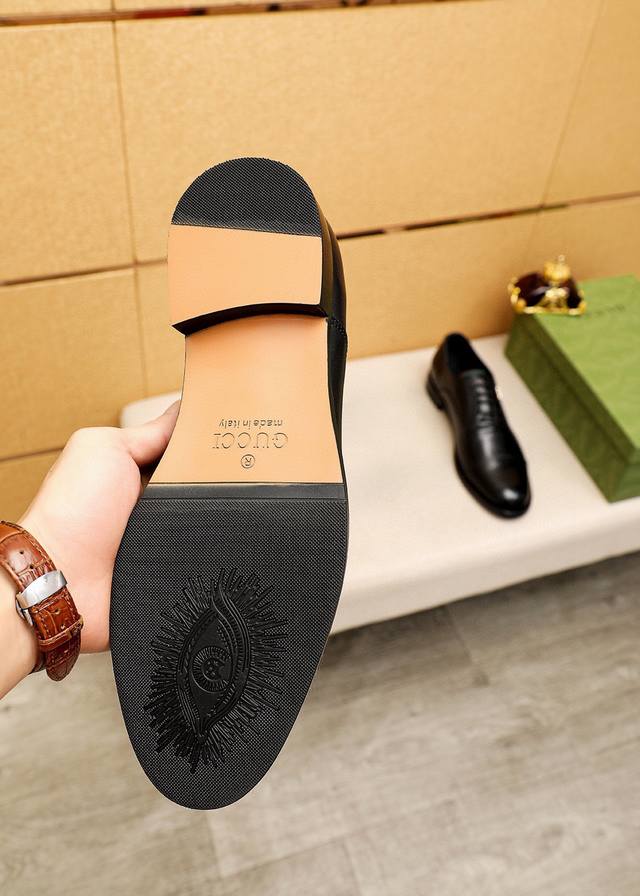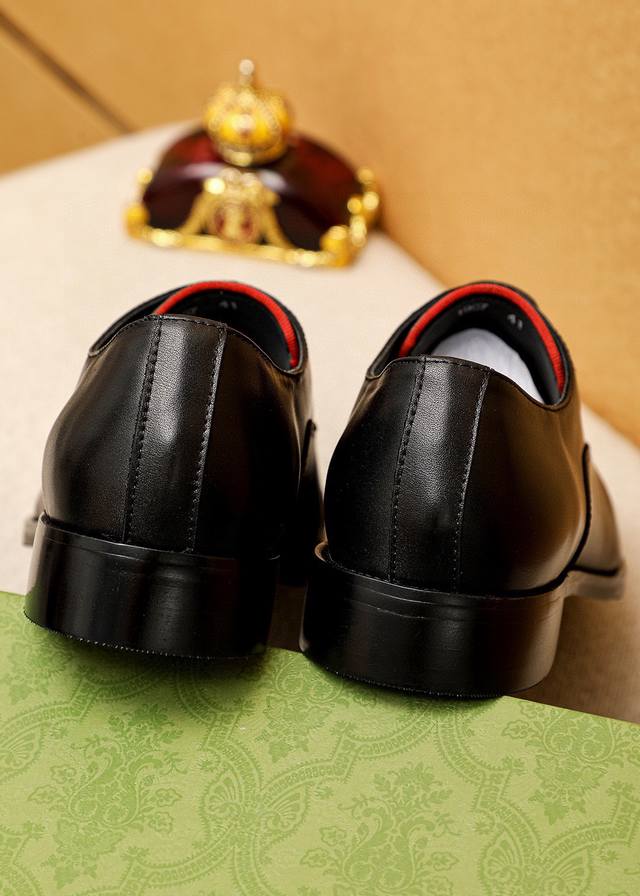 / 商品商标:Gucci 古驰 商务皮鞋 正码码数: 38-44 45.46订制 商品材料:精选 进口头层小牛皮鞋面,进口小染牛皮内里。强烈立体视觉效果,组合大底