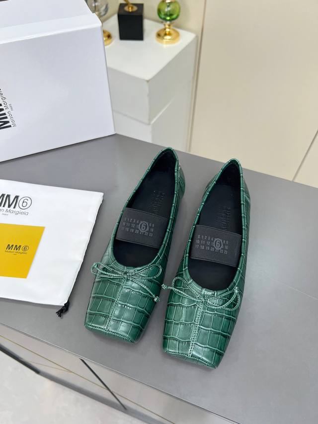 舒适度不用说,肯定会很舒服的,廓形 独具匠心的鳄鱼纹皮料和对比材质的拼贴均是 Mm6 Maison Magical,值得期待的特色,这款芭蕾舞鞋采用很有质感的鳄鱼纹皮料方头的雅致和Logo松紧带 简直绝绝子了原版包装!
