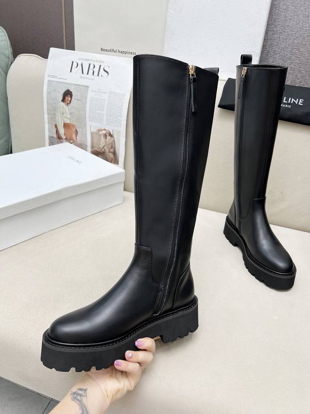 工厂p价 女装女鞋 运动原单 Celine 赛琳 凯旋门时尚百搭舒适厚底靴!!不退色五金扣面料头层牛皮、内里羊、发炮大底、标准码数35 40 41、42订做不退