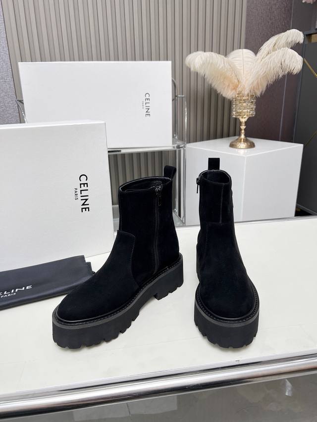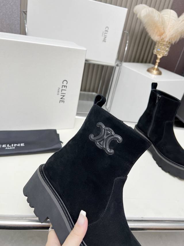 工厂p价 女装女鞋 运动原单 Celine 赛琳 凯旋门时尚百搭舒适厚底靴!!面料头层牛皮、高丝光羊京、内里羊皮发炮大底、标准码数35 40 41、42订做不退