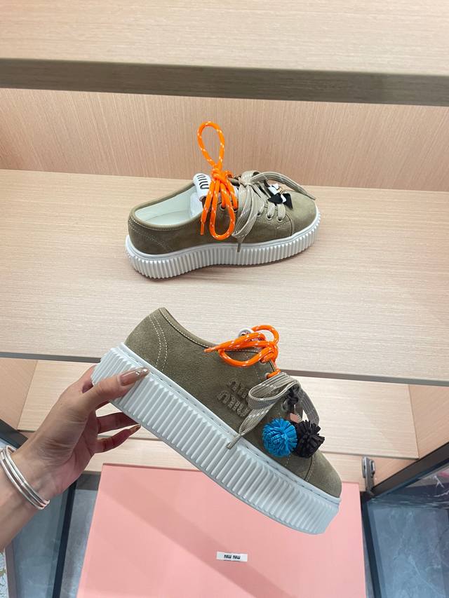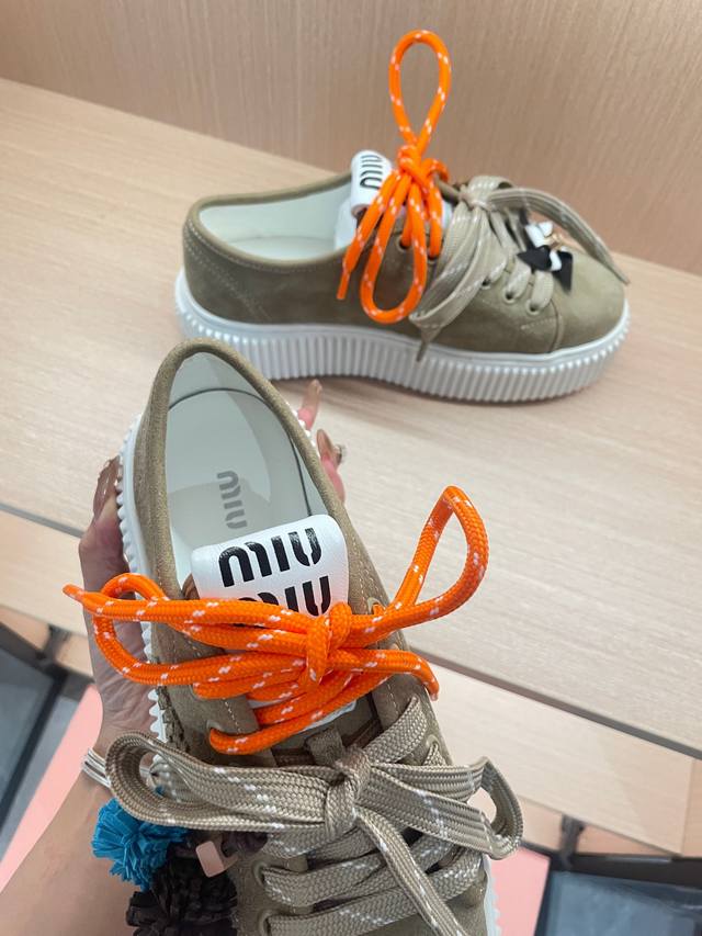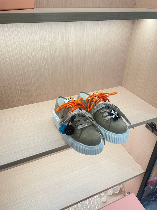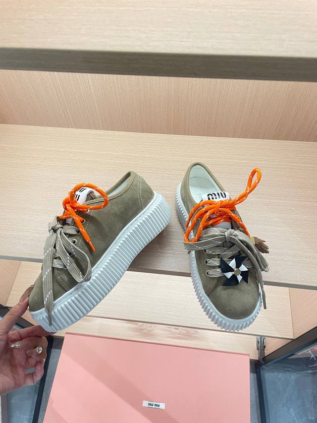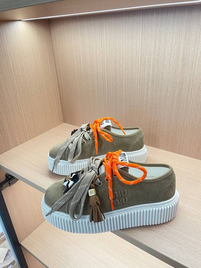 工厂p价 女装女鞋 运动原单 Miumiu25秋冬新款厚底饼干鞋小白鞋