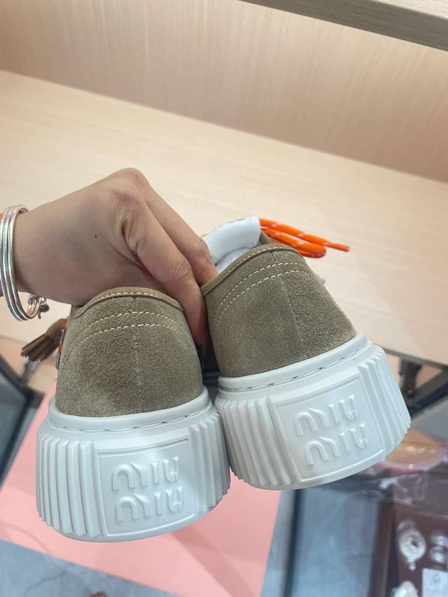 / 工厂p价 女装女鞋 运动原单 Miumiu25秋冬新款厚底饼干鞋小白鞋 简约造型,超轻原版开模鞋底,脚感妥妥满分 好穿好搭,增高6Cm 鞋面:进口磨砂皮 内里: