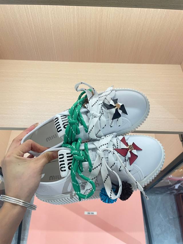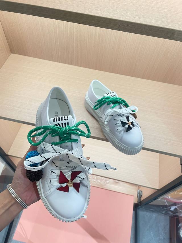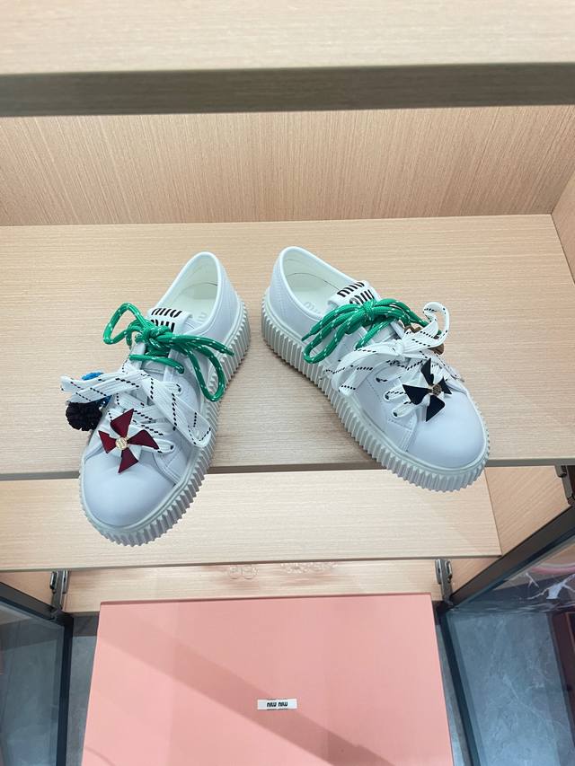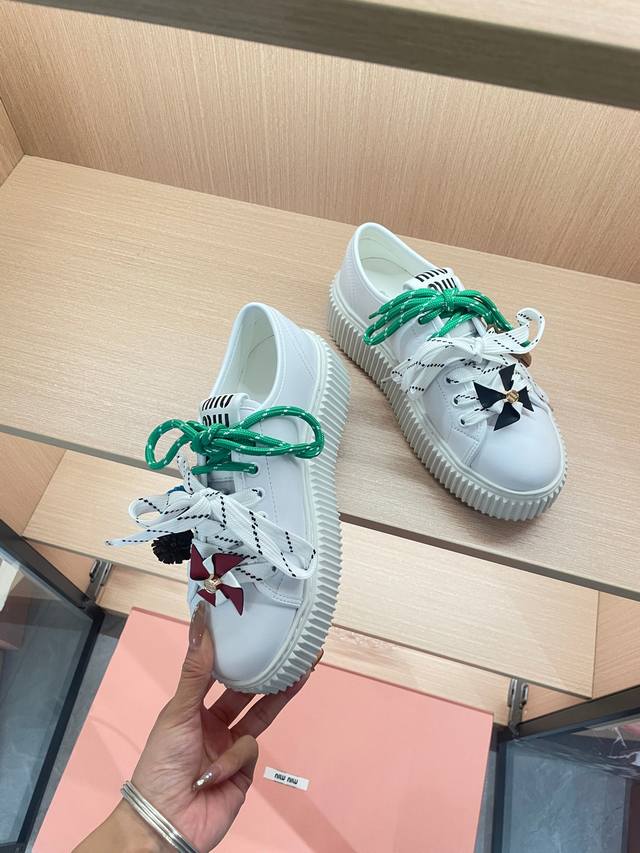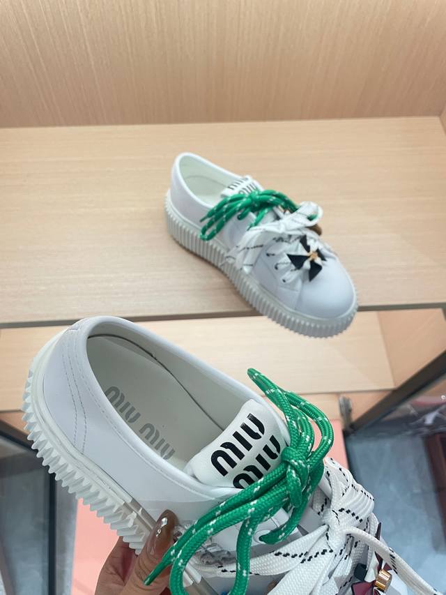 工厂p价 女装女鞋 运动原单 Miumiu25秋冬新款厚底饼干鞋小白鞋