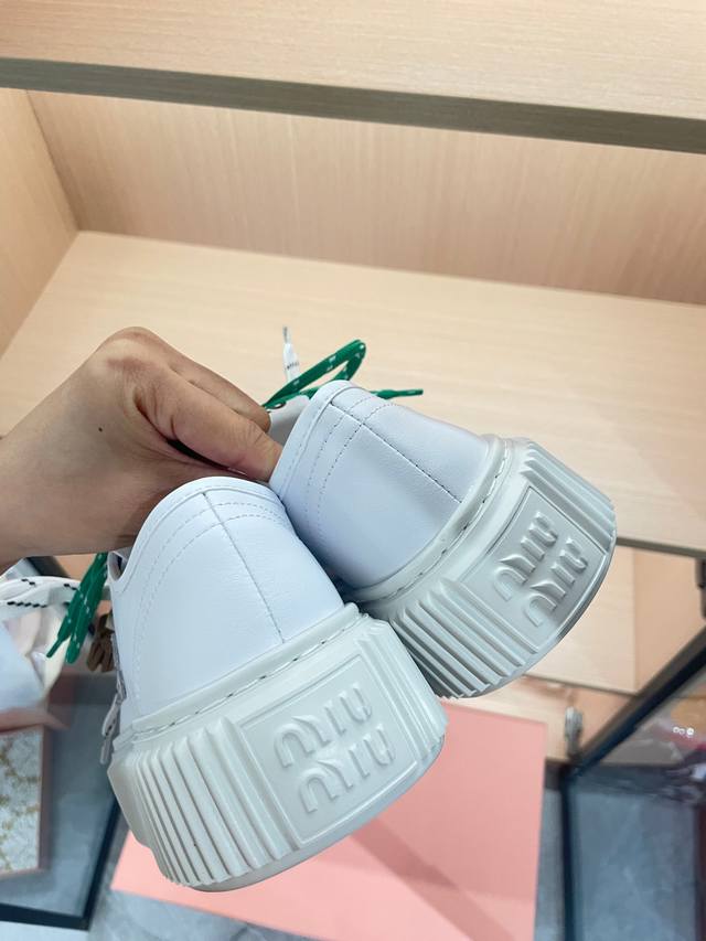工厂p价 女装女鞋 运动原单 Miumiu25秋冬新款厚底饼干鞋小白鞋 简约造型,超轻原版开模鞋底,脚感妥妥满分 好穿好搭,增高6Cm 鞋面:进口磨砂 内里:进