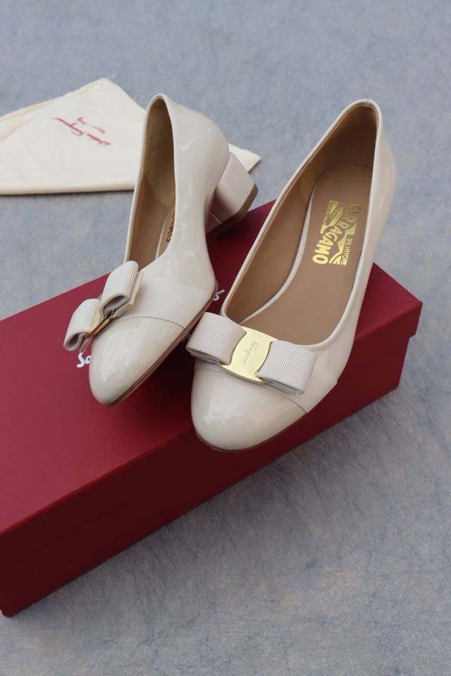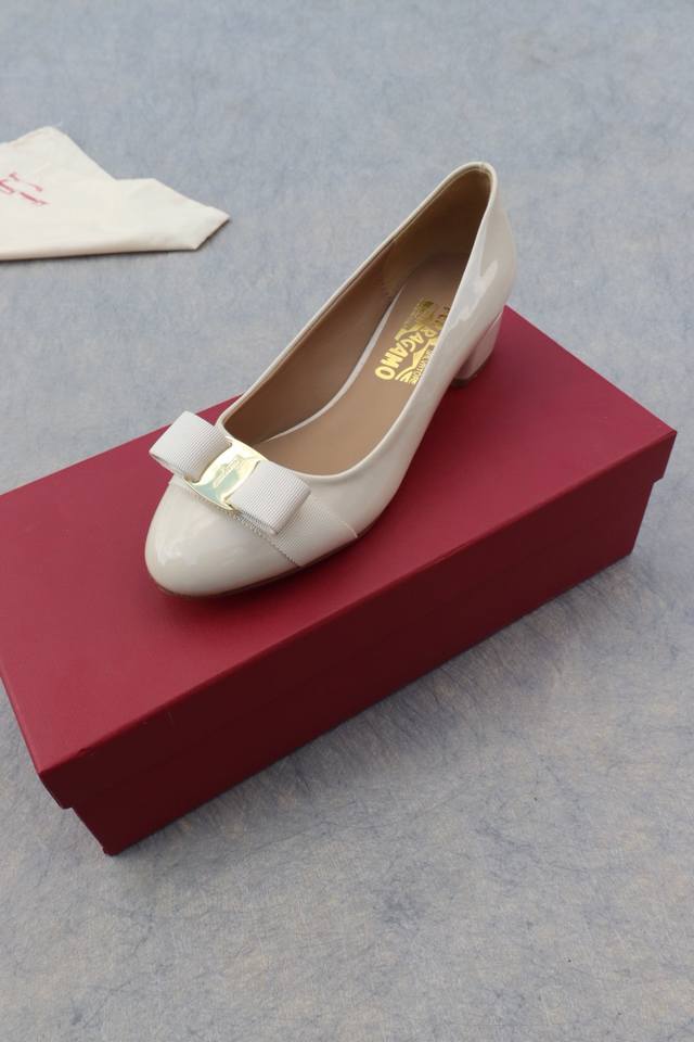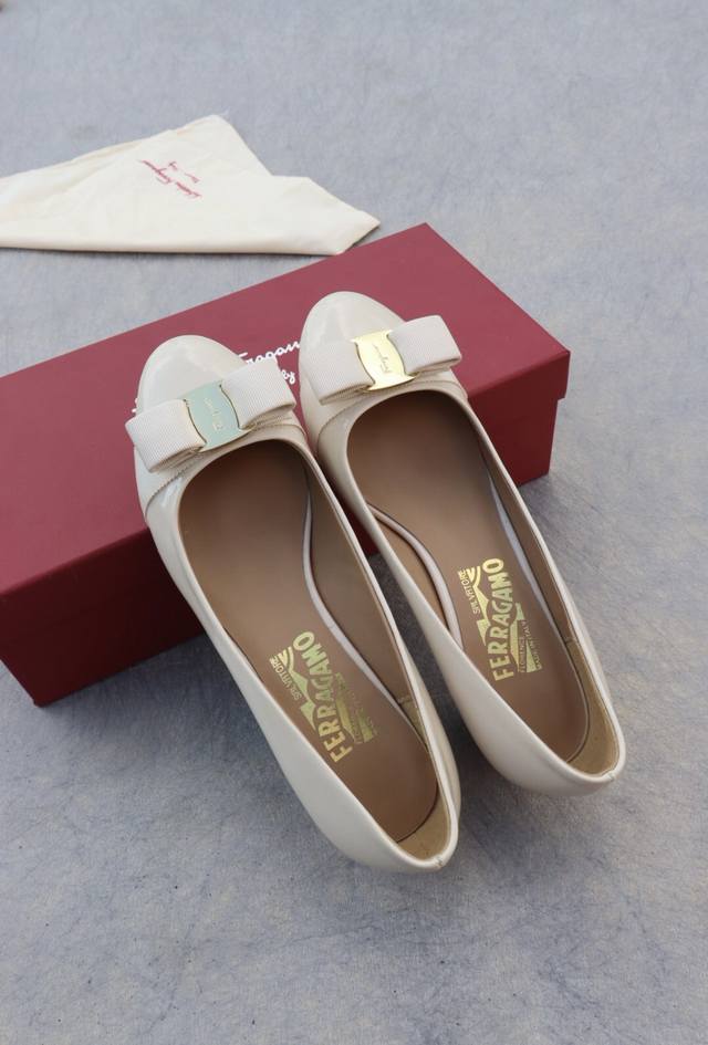 工厂p价 女装女鞋 运动原单 Salvatore Ferragamo 菲拉格慕Sf经典款, 修脚版型,上脚超美 跟高:3Cm 经典布扣 鞋面:进口牛漆皮 内里: