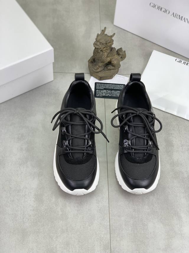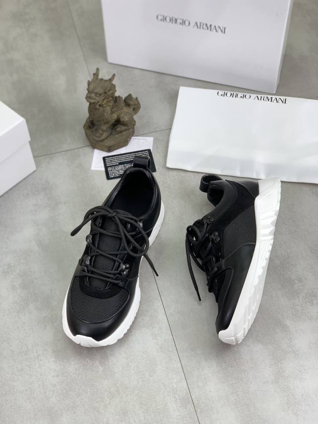 工厂p价p 实价 Giorgio Armani阿玛尼新款休闲运动男鞋到货,Kint-And-Leather Snakers新秀首发