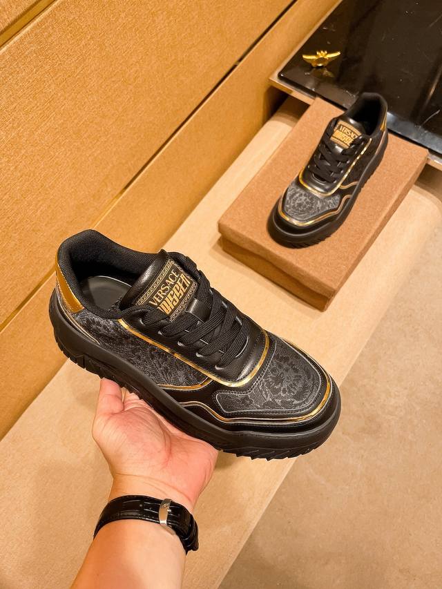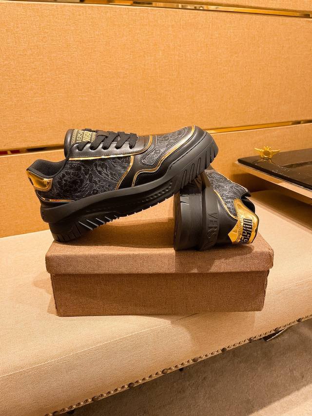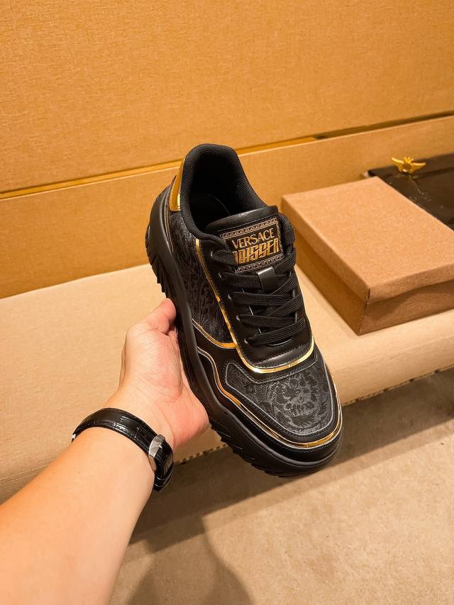 Versace 范思哲 米兰男时装周走秀款,鞋面进口牛皮+吸汗透气不掉色头层穿舒服羊皮内里,超滑质感,吸汗透气...