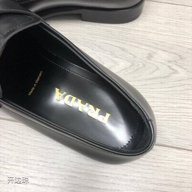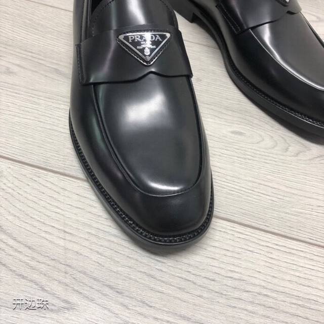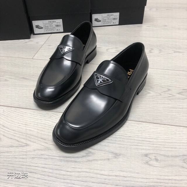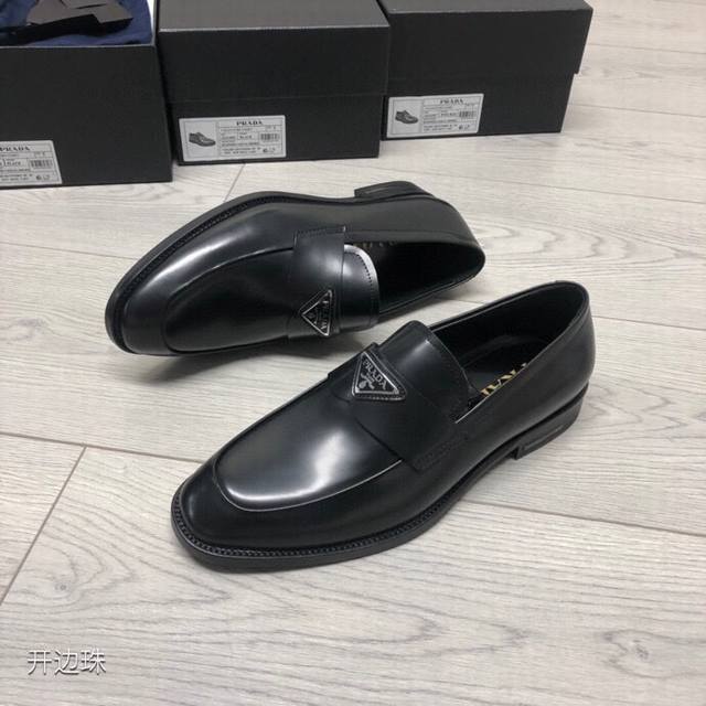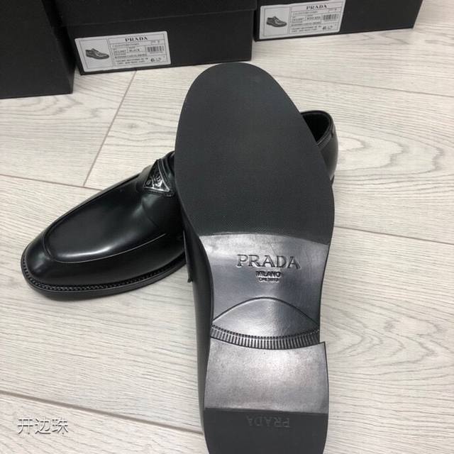 新品prad*精品四季鞋 意大利进口开边珠牛皮 搭配经典三角Logo饰扣 柔软牛皮内里+牛皮垫脚 原版真皮大底+已加橡胶片可直接上脚穿啰 超舒服的一款 男神必备