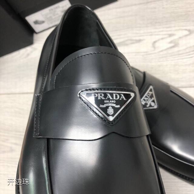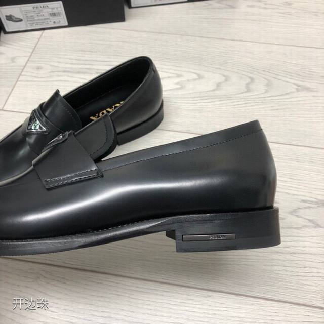/ 新品prad*精品四季鞋 意大利进口开边珠牛皮 搭配经典三角Logo饰扣 柔软牛皮内里+牛皮垫脚 原版真皮大底+已加橡胶片可直接上脚穿啰 超舒服的一款 男神必备