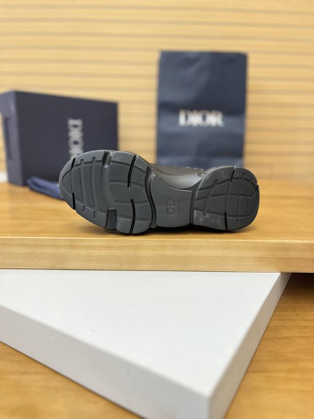 从复古跑步鞋款汲取灵感厚实的低帮轮廓采用灰色牛皮革以及蓝色和白色网眼织物拼接鞋面,搭配黑色、白色和蓝色的刻花橡胶鞋底。蓝色网眼织物鞋舌和鞋跟支撑采用尼龙丝带装饰,侧面饰以“Dio~”徽标。与西装搭配形成鲜明的对比,为您的外观添加运动服饰的时尚气息。厚底可**4Cm左右~