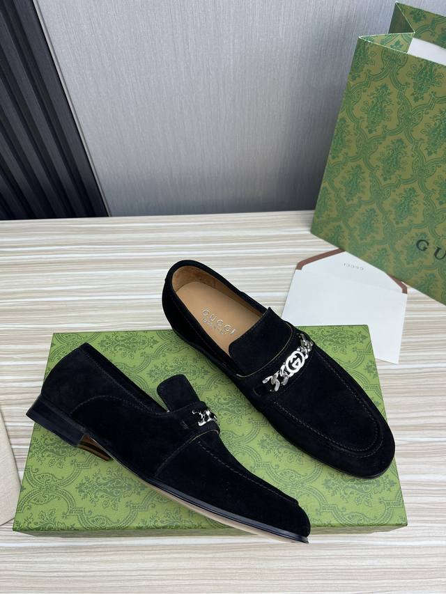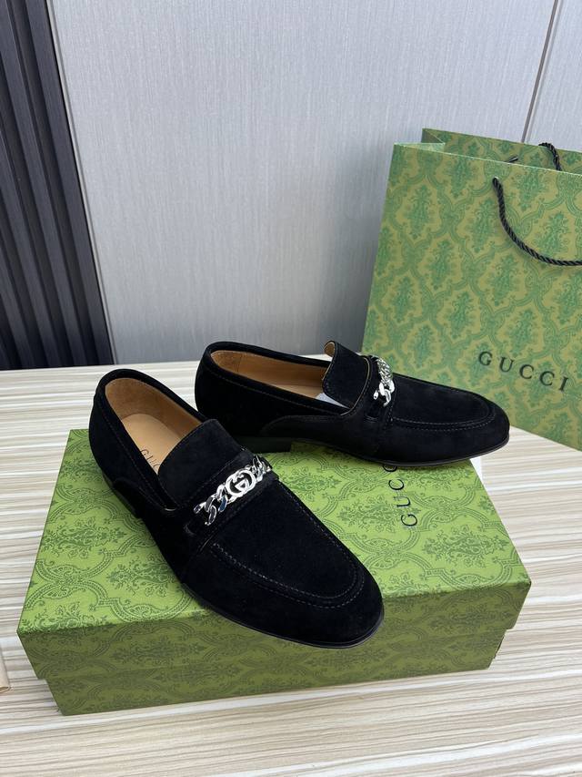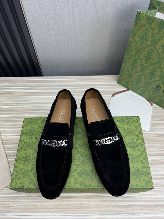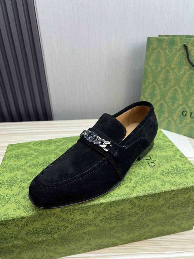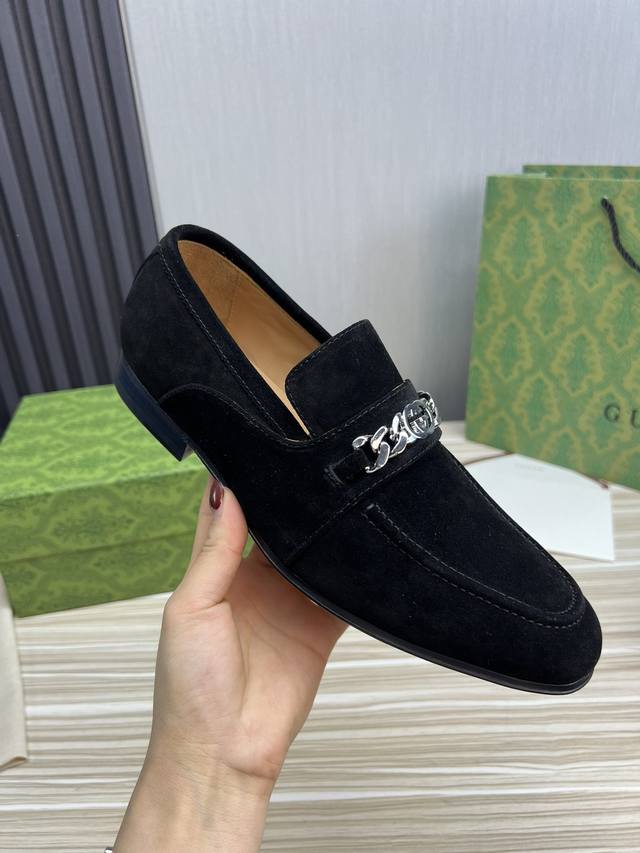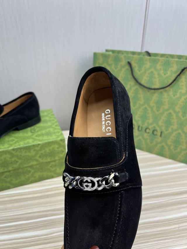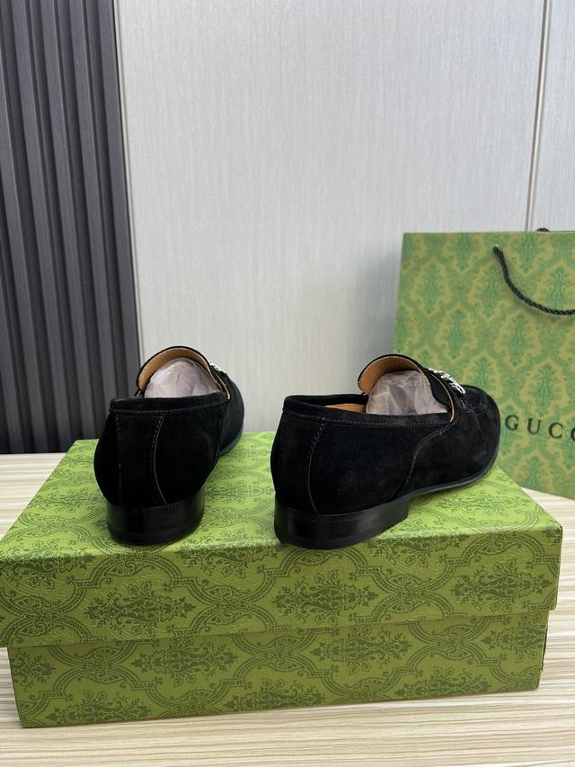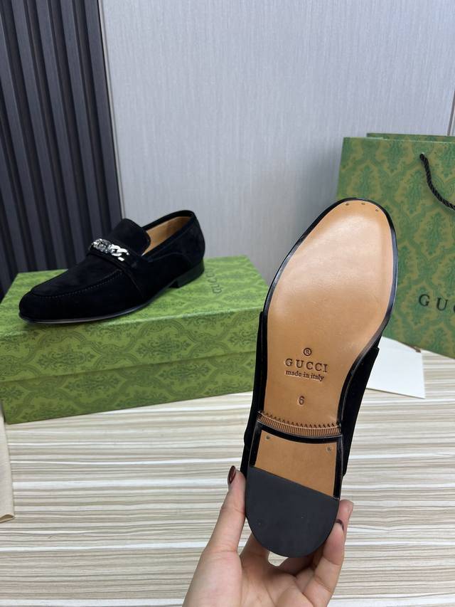 品牌典藏的别致材质,马衔扣细节是G家传统元素,鞋型瘦长且鞋头修长,纯手工制作,真皮大底真皮沿条