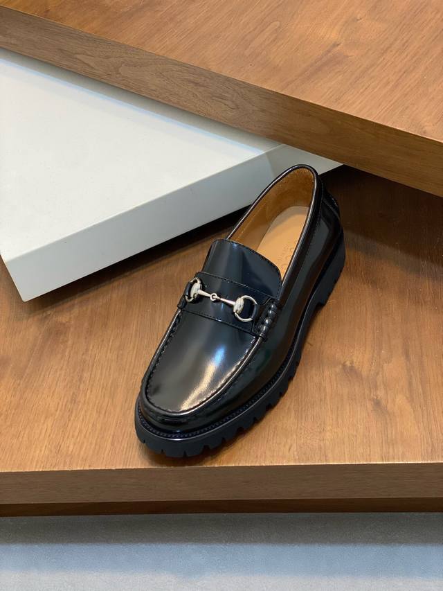 材质:古奇新款 休闲 皮鞋 高版本 专柜同步发售。鞋面采用意大利进口牛皮 搭配原版五金配件。原版水染牛皮内里。 凸显高端 贵气 档次 做工考究。鞋底:原版橡胶发泡大底, 实物拍摄。