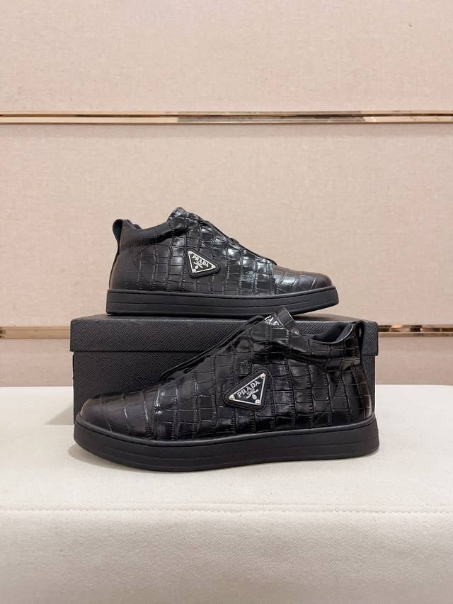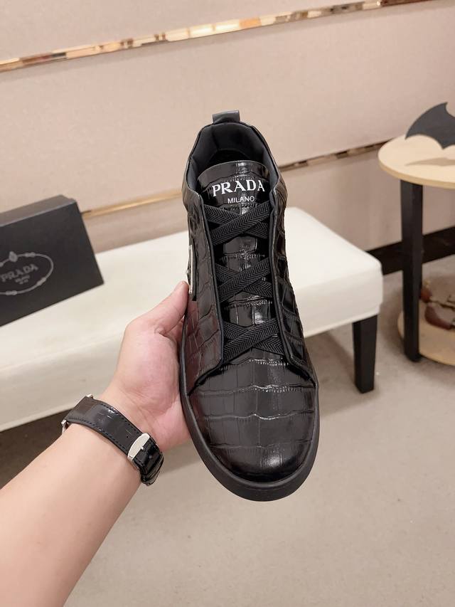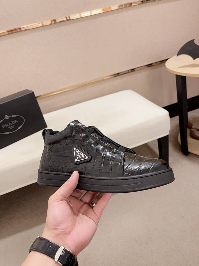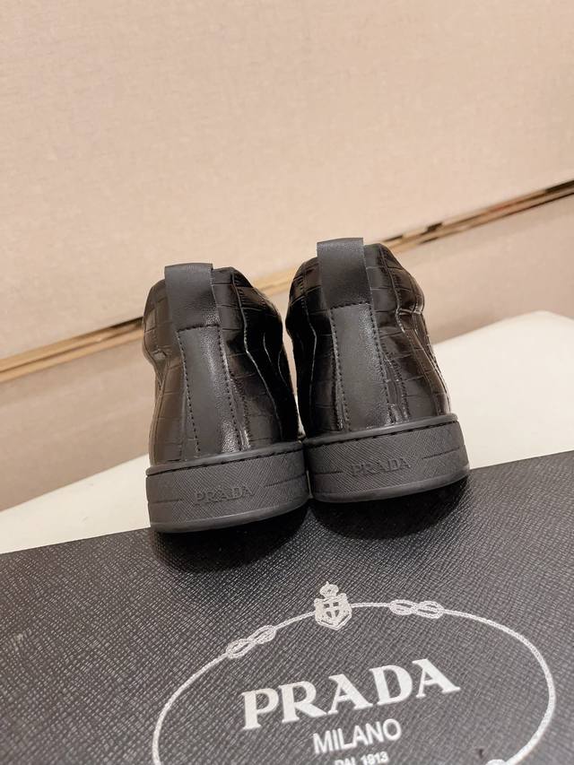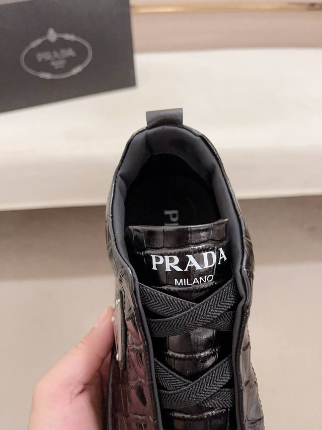 工厂价 PRADA普拉达 秋冬爆款男鞋出货官网同步原版飞织胶片面料+牛皮内里,1比1复刻 ,原厂原版底,38-45 45.定做不退换