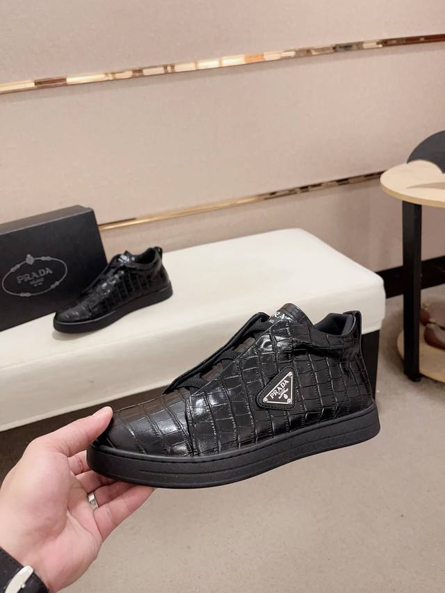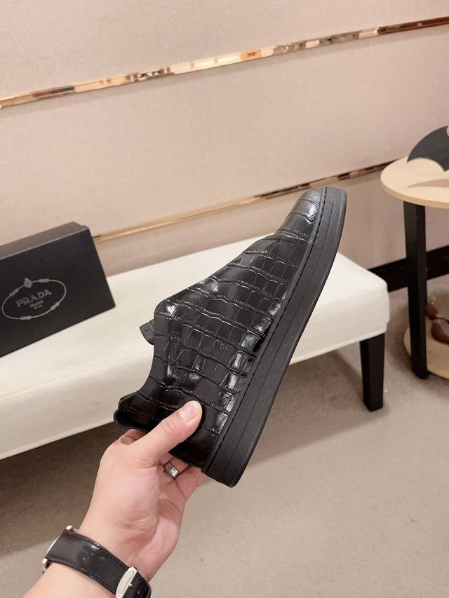 调工厂p价 男装男鞋 运动原单 普拉达 官网最新款休闲时尚男鞋,爆款版型简洁大气,潮男专属.独有的官网最新品牌元素元素原版装饰,时尚又大方,面料原版牛皮牛皮内里,官网指定耐磨休闲大底,专柜经典款实物拍摄38-44