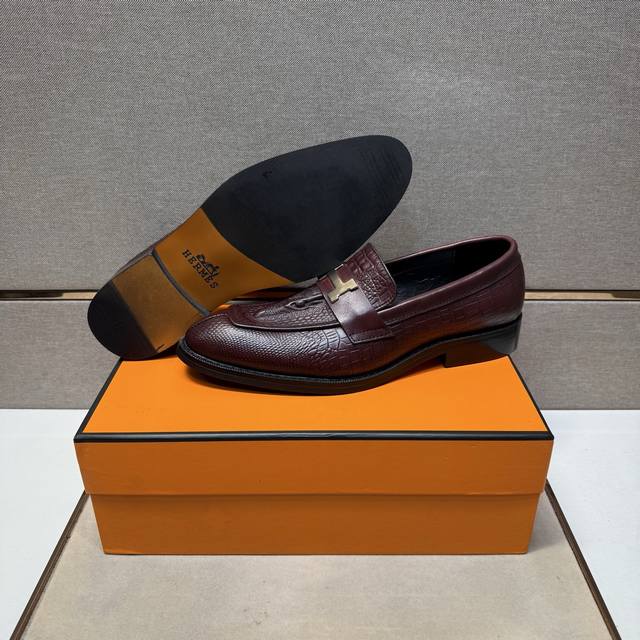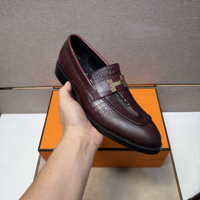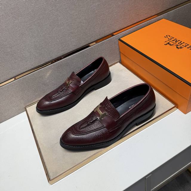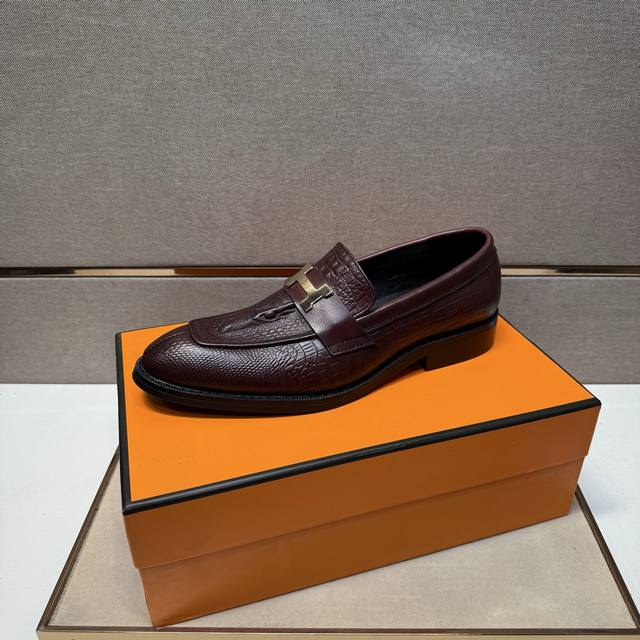 调工厂p价 男装男鞋 运动原单 爱马仕~ 男士休闲正装皮鞋 2025Z柜同步发售 码数:39-44 # 2个颜色鞋面选用多材质拼接真皮内里,舒适透气,鞋底:原版